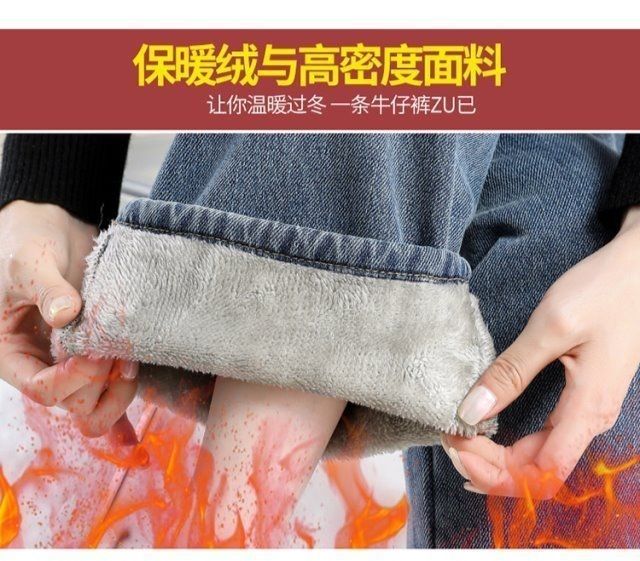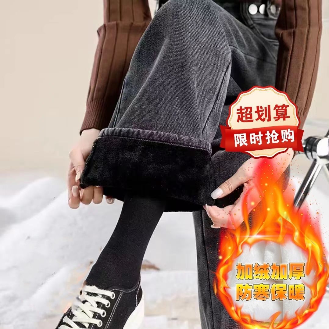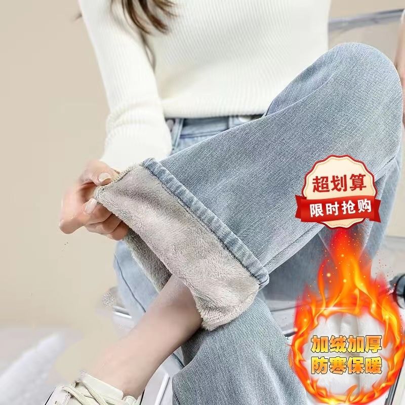 기모 청바지 여성용 겨울 새로운 루즈한 스트레이트 학생 한국식 슬리밍 올매치 와이드 레그 방한 바지스토어 가기