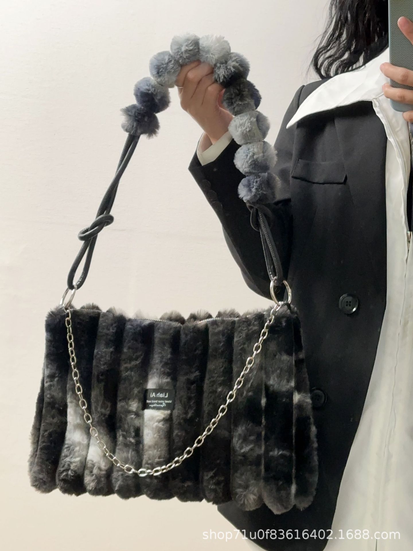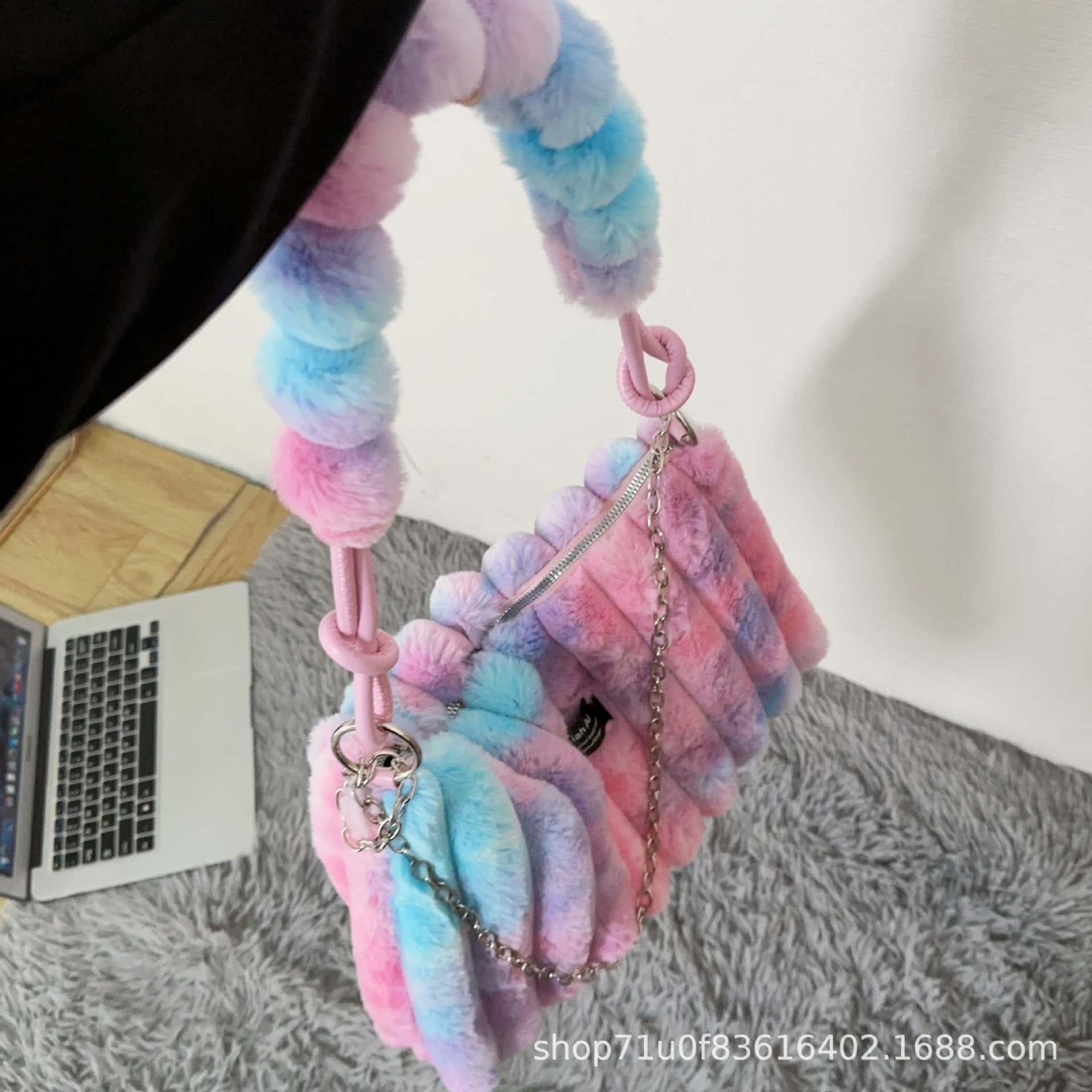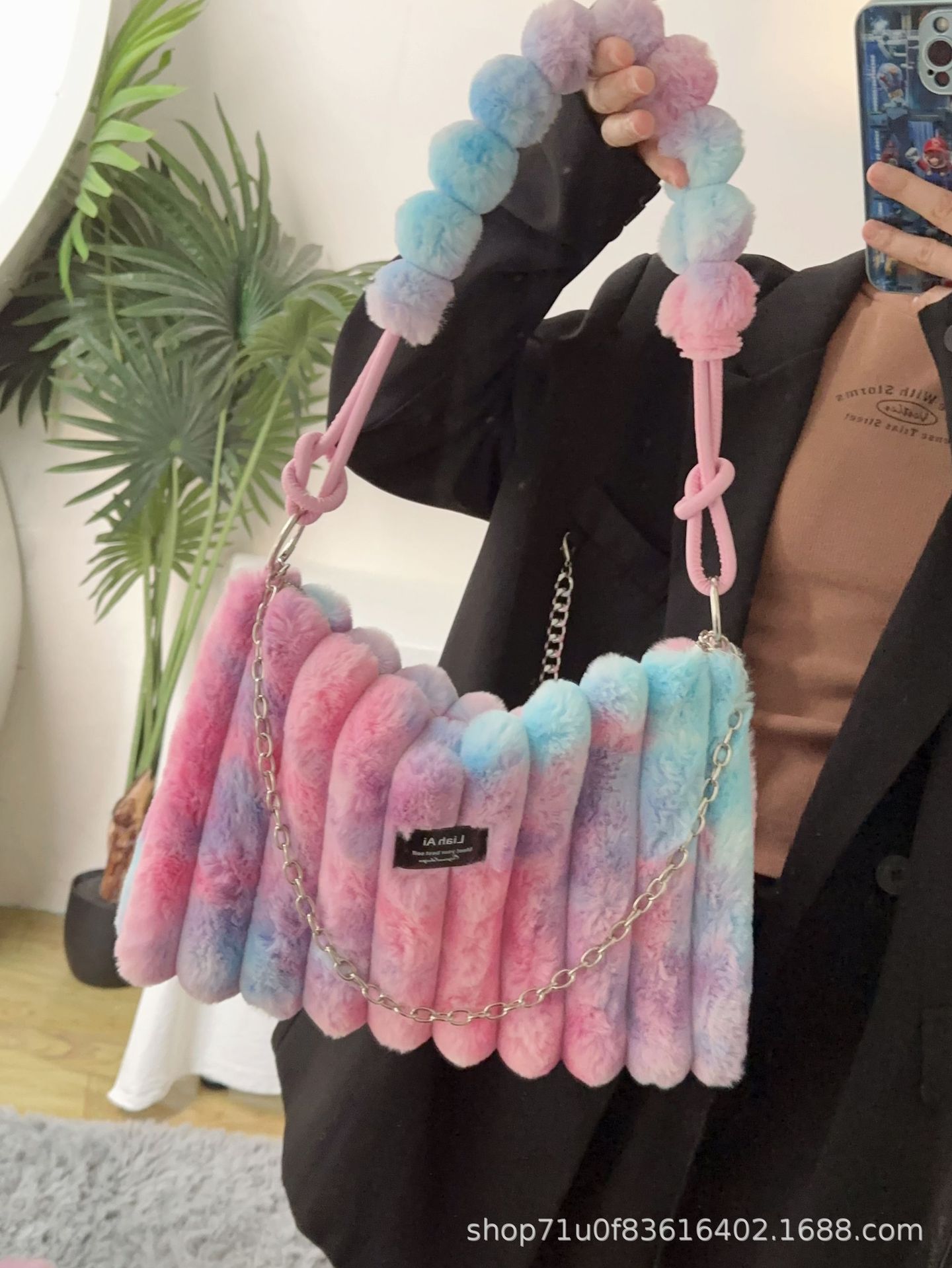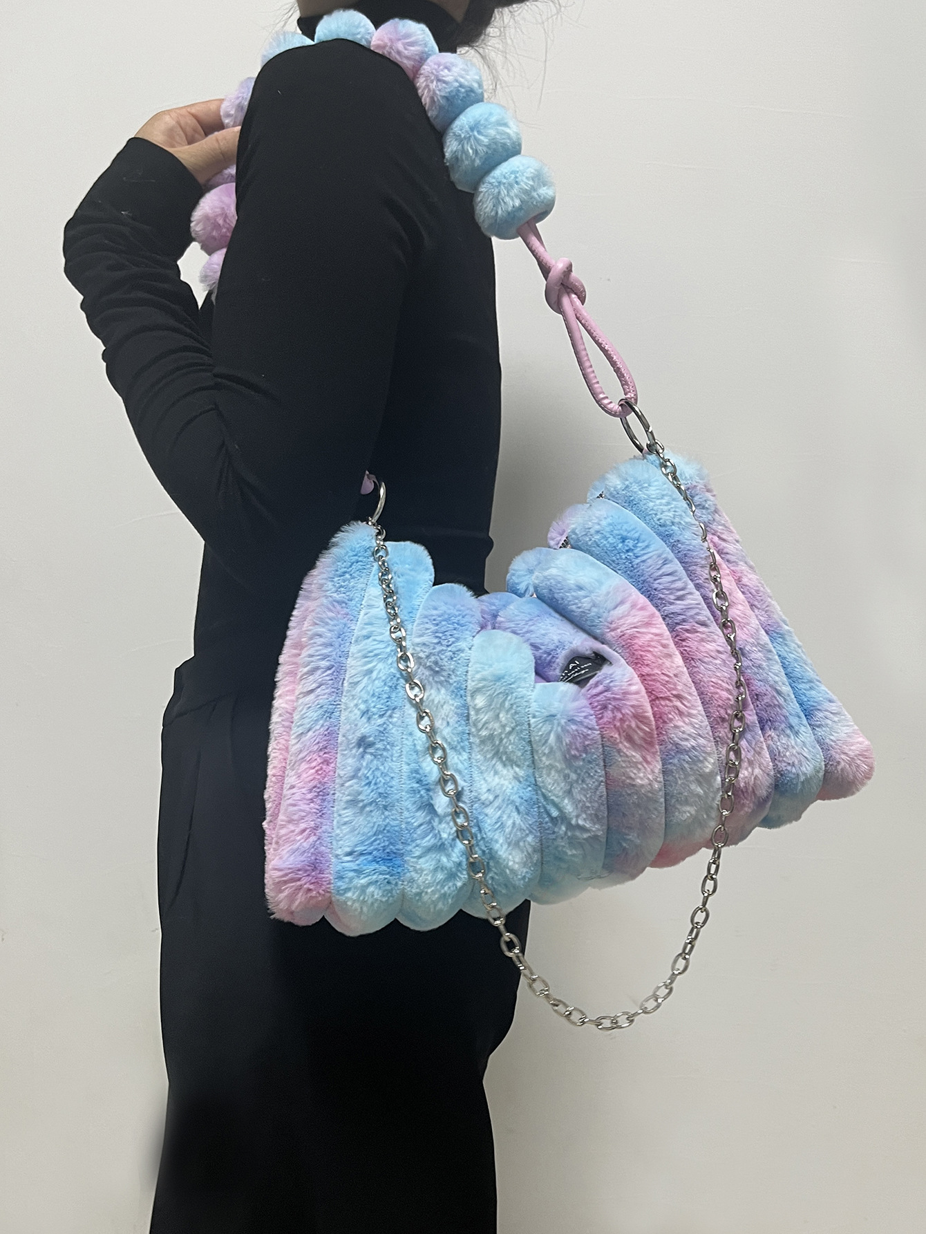 2024 가을과 겨울 새로운 타이 다이 푹신한 가방 휴대용 푹신한 가방 크로스 바디 가방 어깨 언더암 가방 여성용 대용량