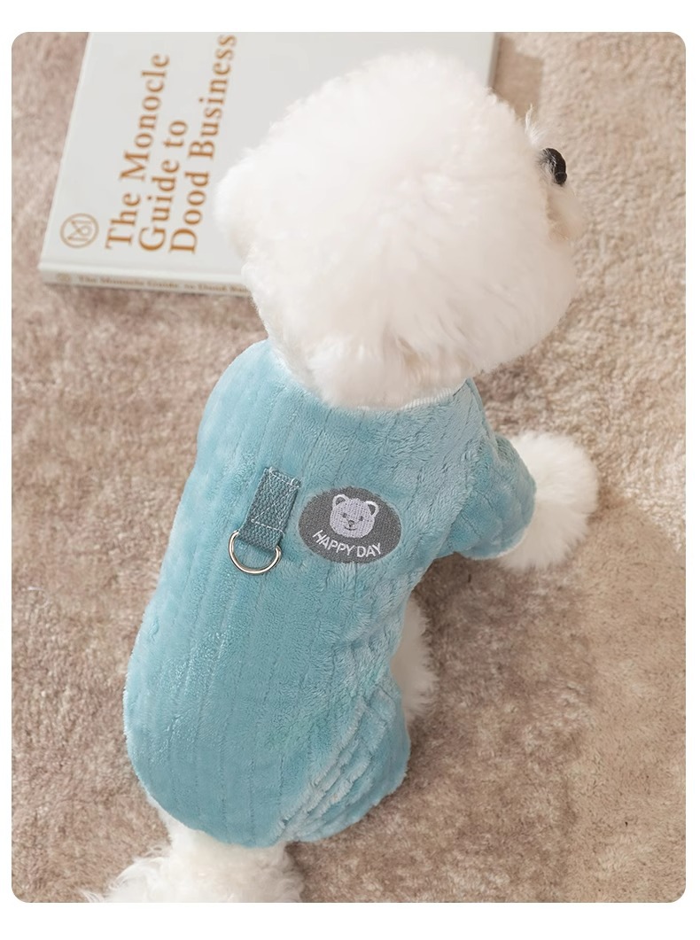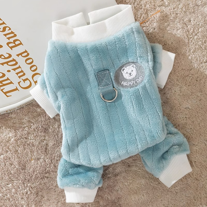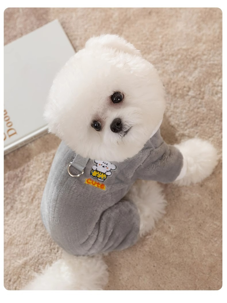 가을과 겨울 개 일본과 한국 귀여운 만화 곰 견인 네 다리 양털 고양이 따뜻한 두꺼운 애완 동물 개 옷