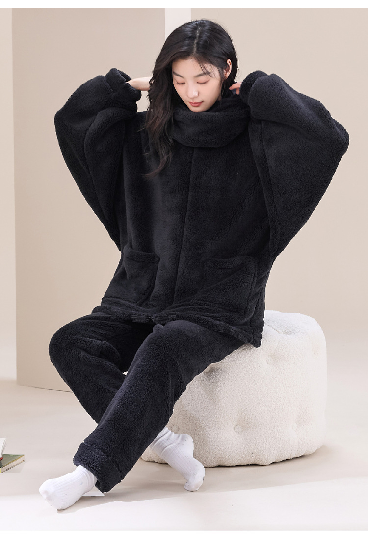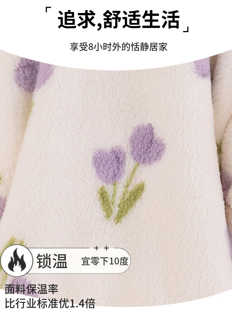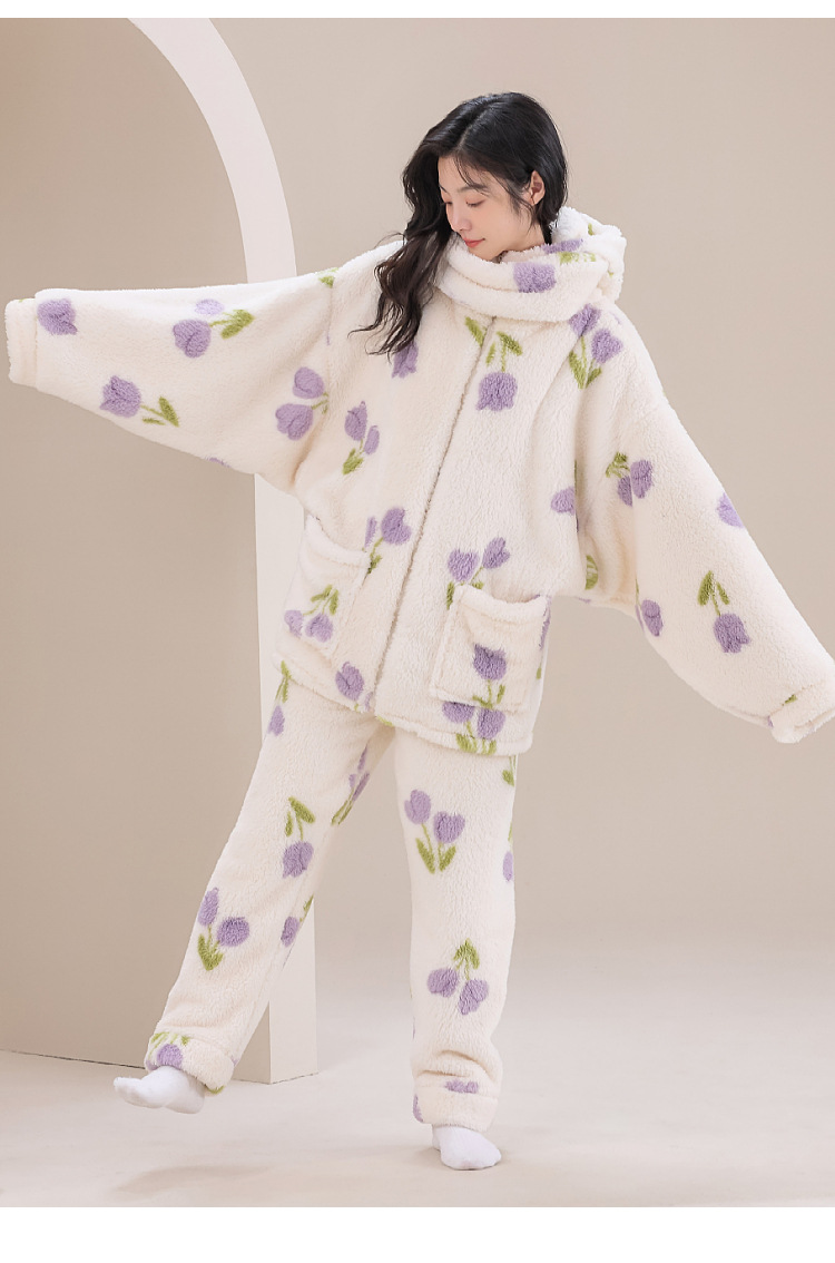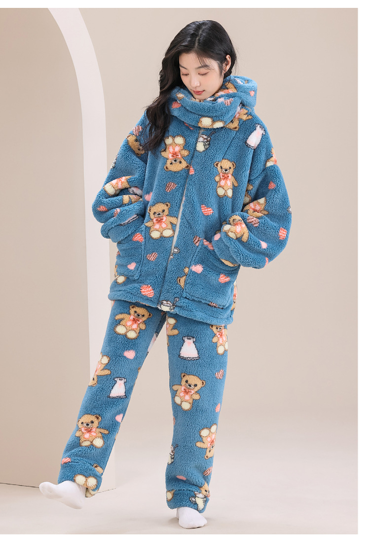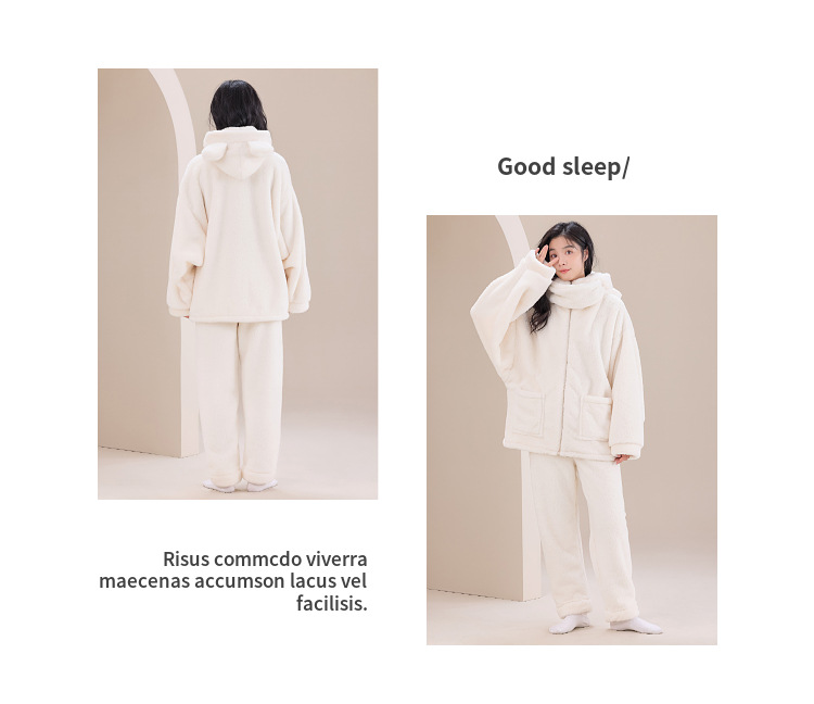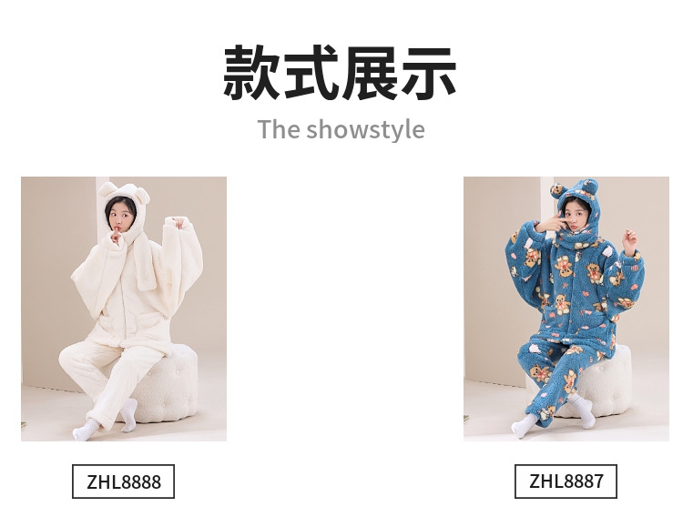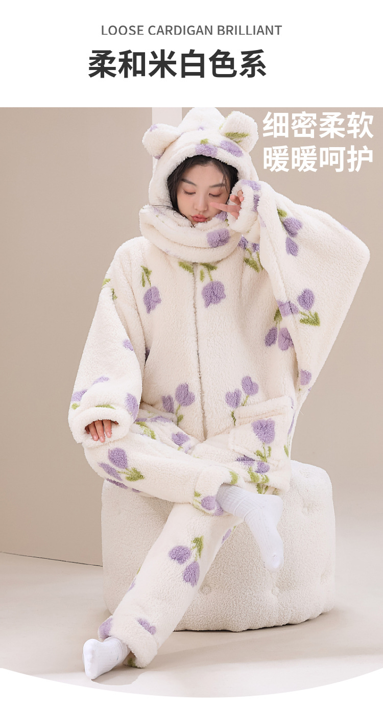 23 가을과 겨울 새로운 기모 두꺼운 가정 옷 잠옷은 학생과 여성 후드 산호 양털 따뜻한 세트 밖에서 착용 할 수 있습니다스토어 가기
