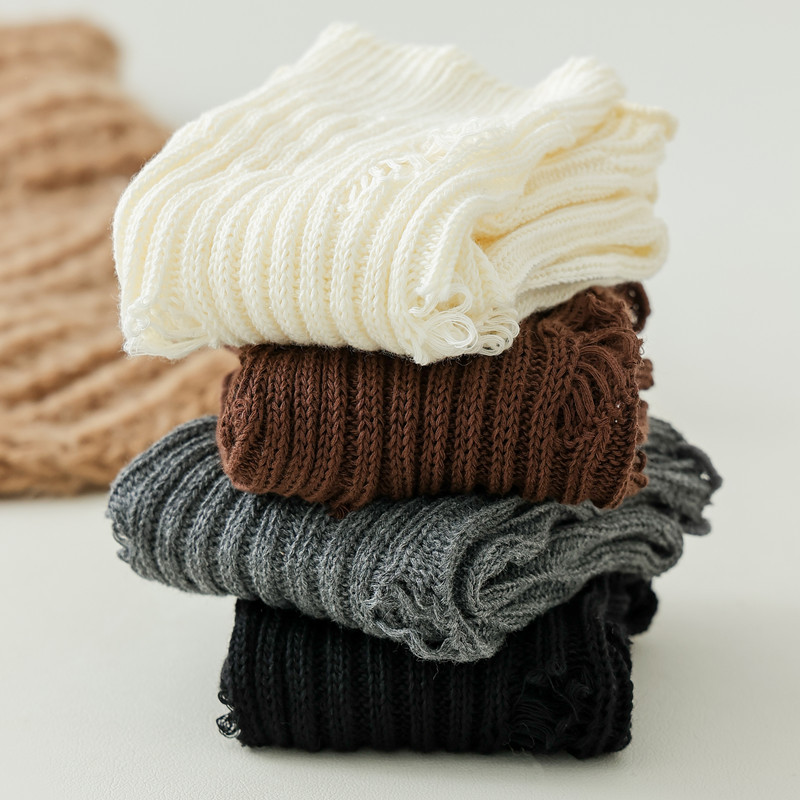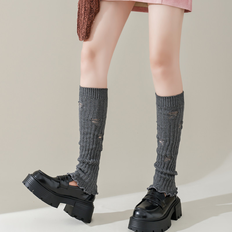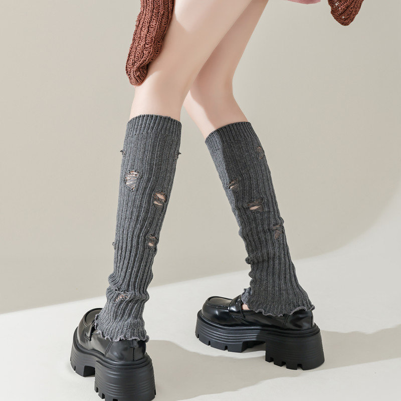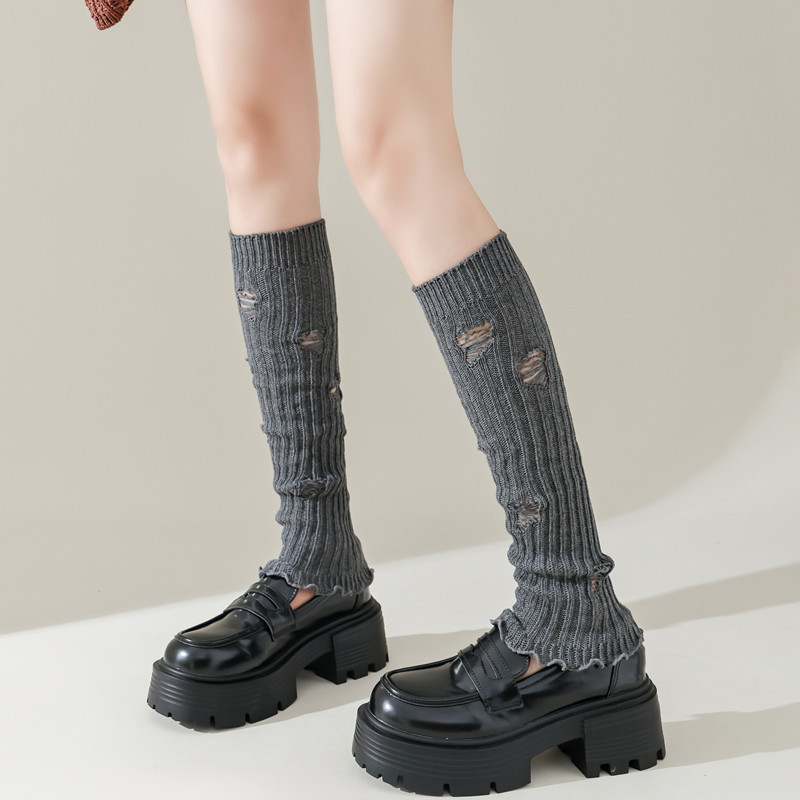 긴 튜브 구멍 양말 봄과 가을 Y2K 하위 문화 스파이스 소녀 다리 커버 회색 니트 송아지 양말 순수 면화 포장 양말스토어 가기