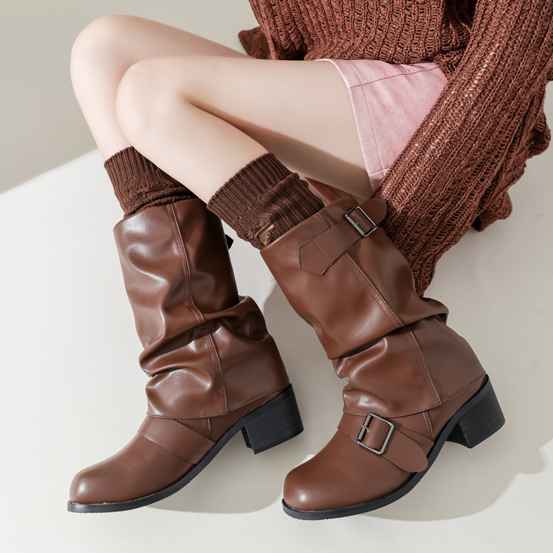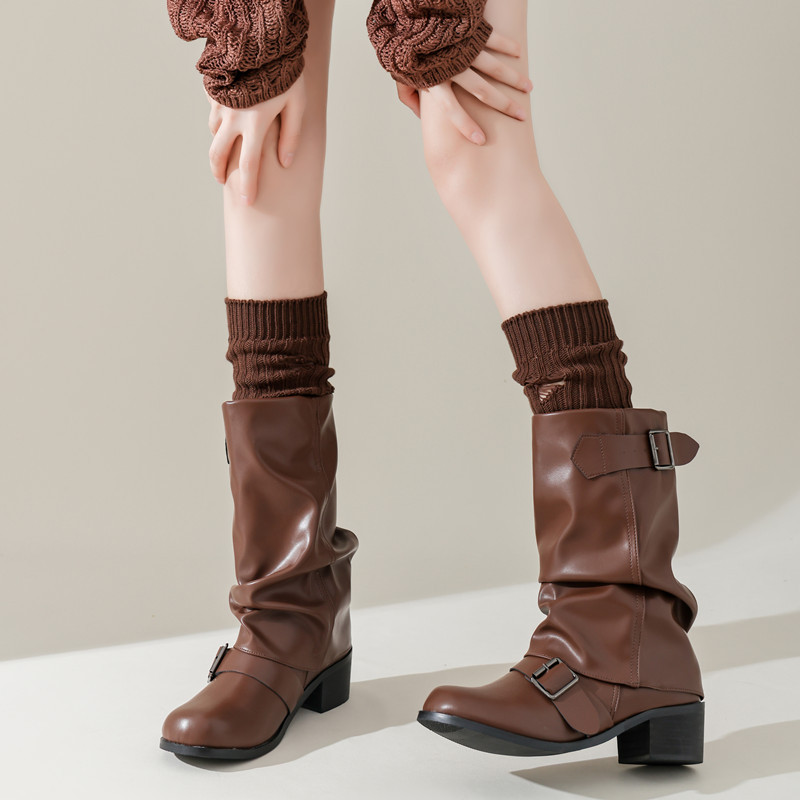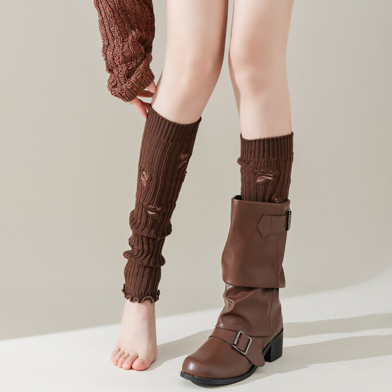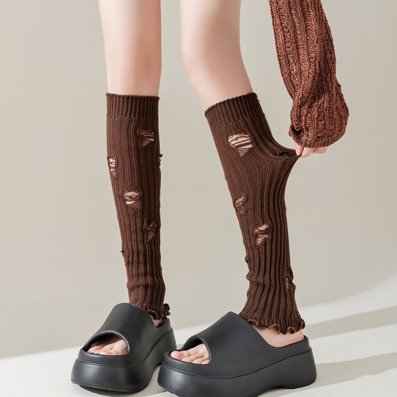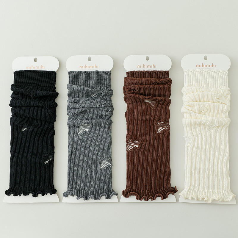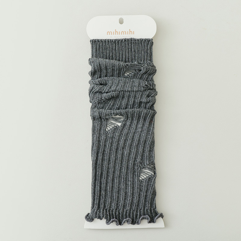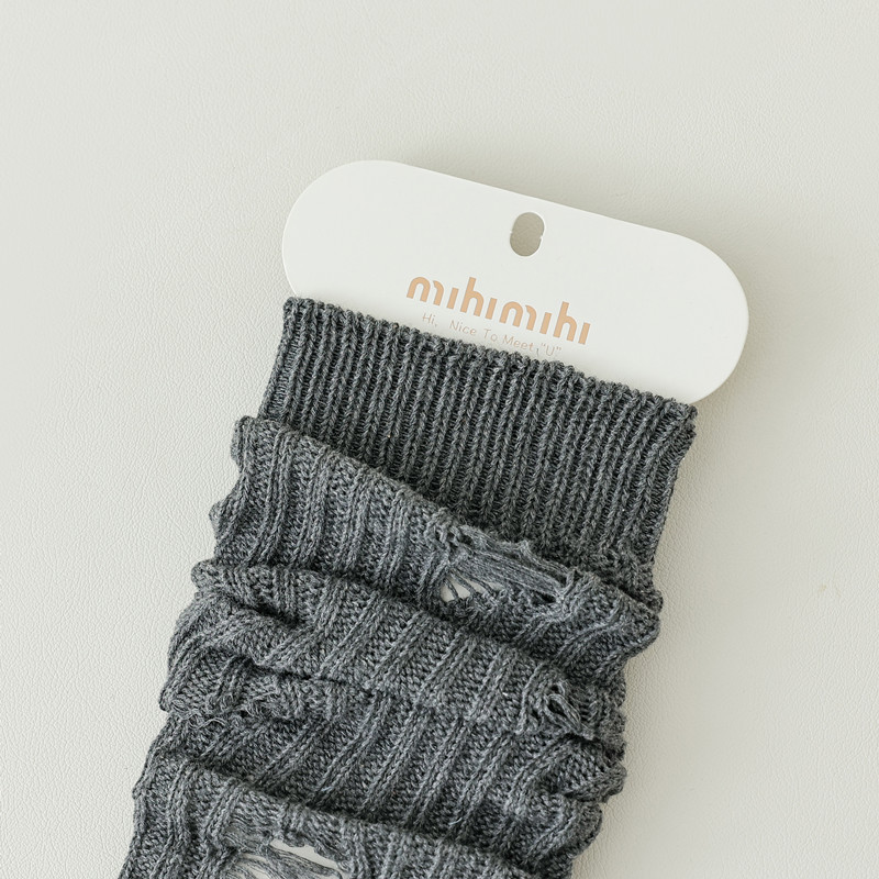 긴 튜브 구멍 양말 봄과 가을 Y2K 하위 문화 스파이스 소녀 다리 커버 회색 니트 송아지 양말 순수 면화 포장 양말