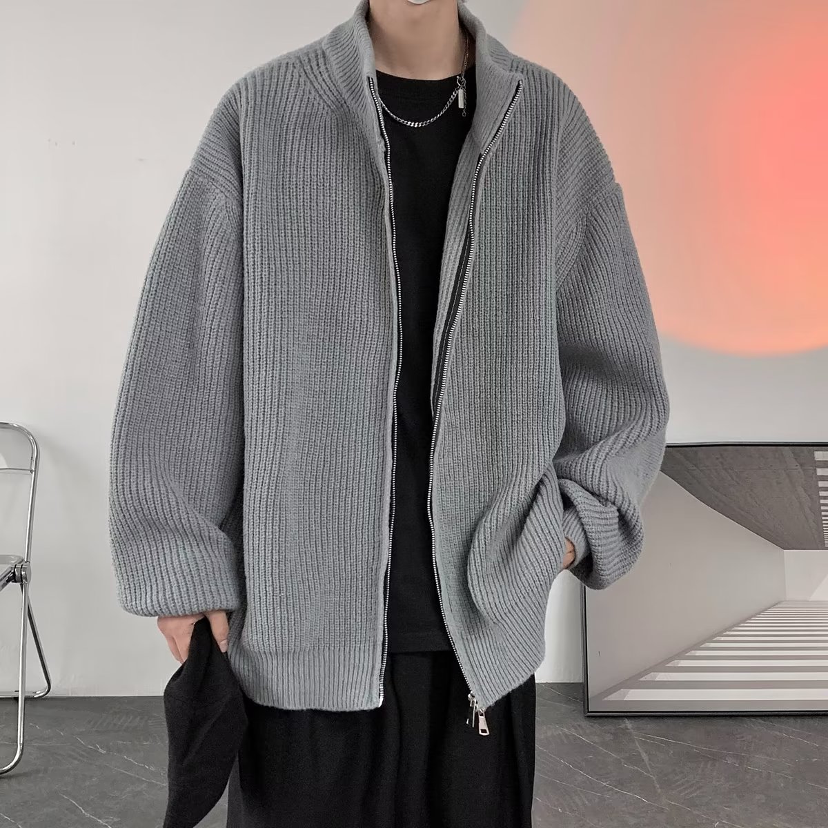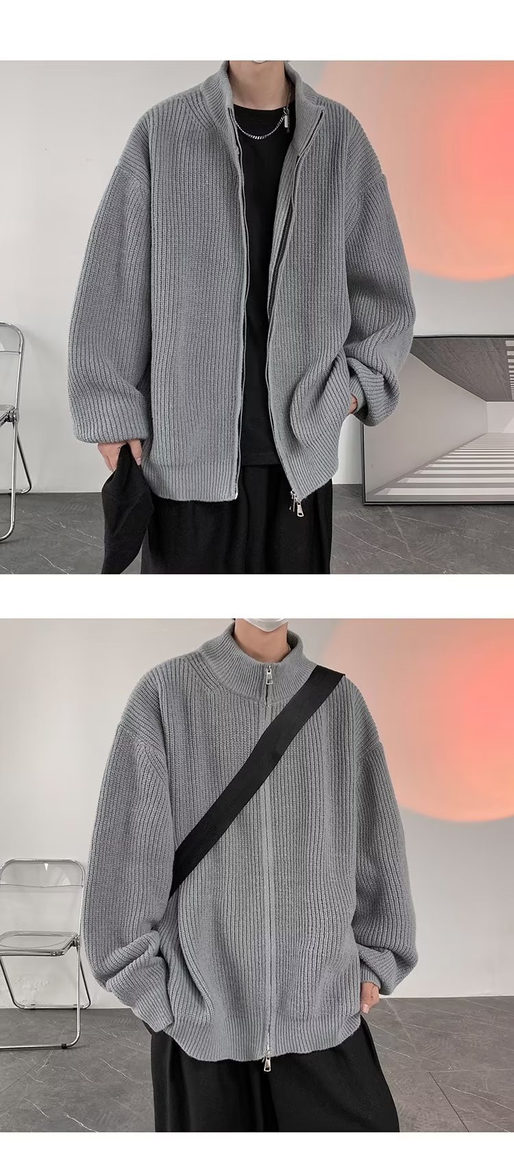가을과 겨울 새 코트 유행 캐주얼 남성 스웨터 스웨터 남성용 지퍼 가디건 스웨터 니트웨어 남성용 세로 칼라