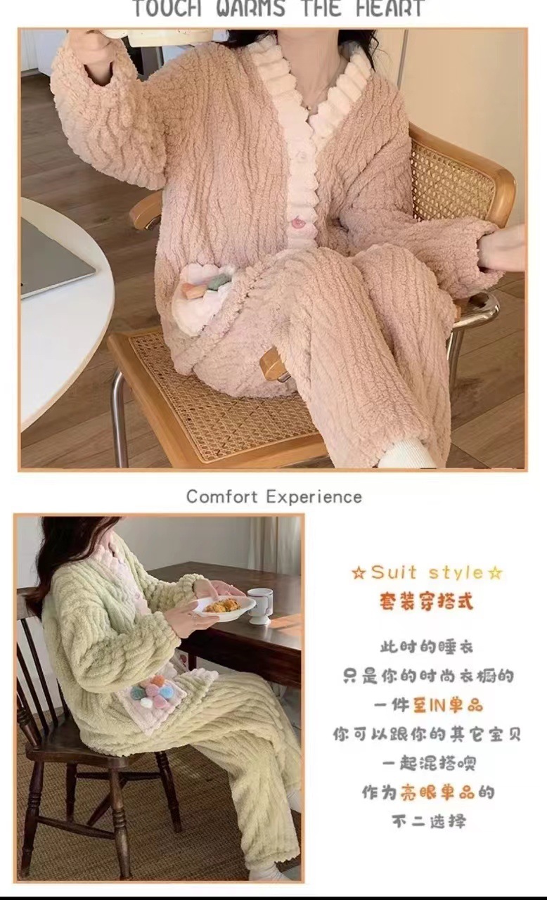 가을과 겨울 새로운 달콤한 플란넬 잠옷 세트 신선한 요정 스타일 겉옷에 대 한 두꺼운 따뜻한 가정 옷스토어 가기