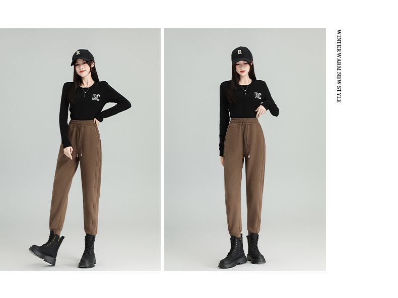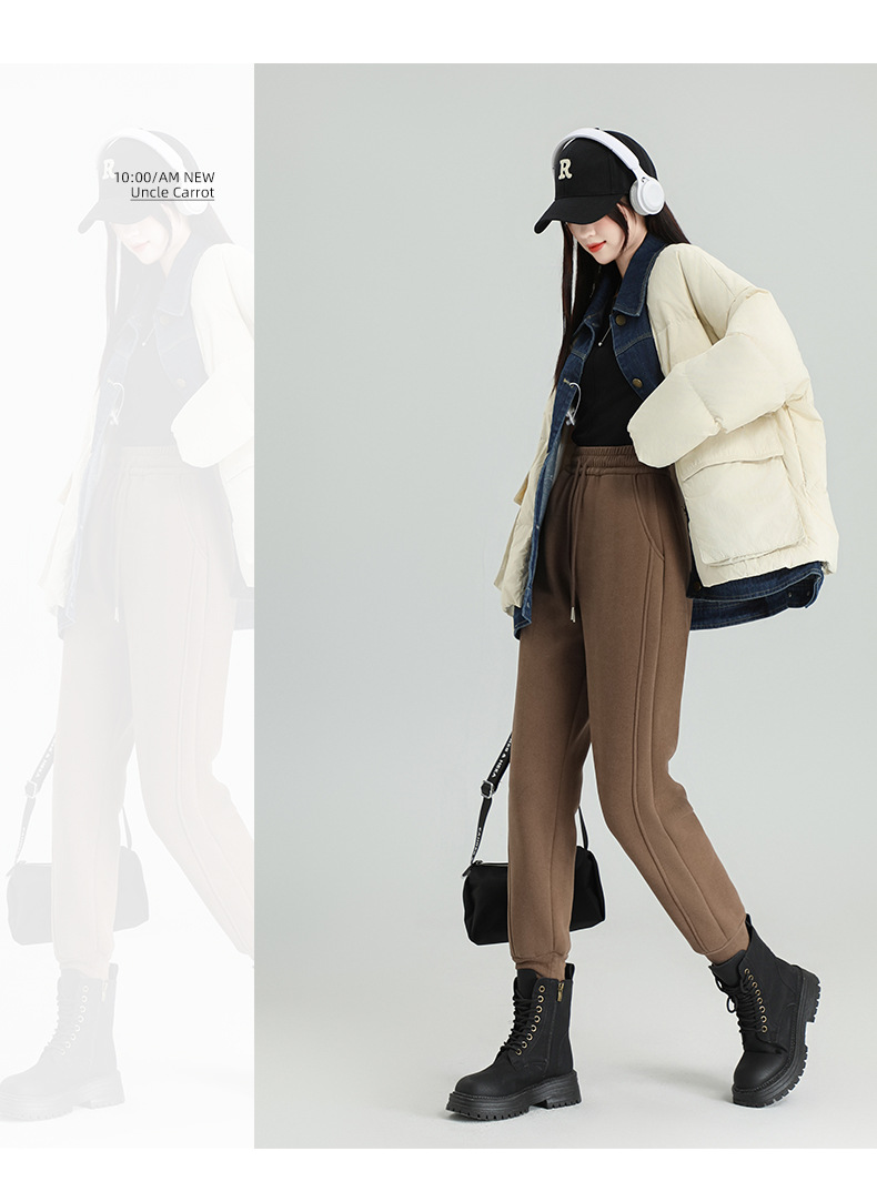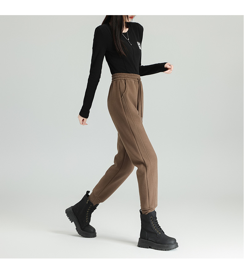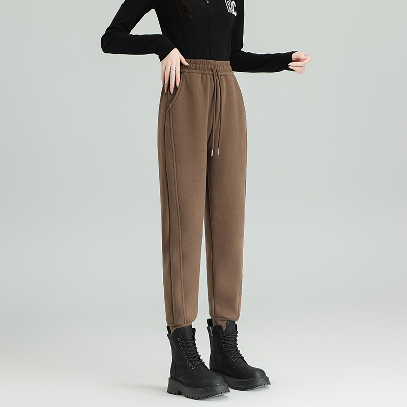 무 방풍 바지 가을과 겨울 새로운 하이 퀄리티 열 보관 따뜻한 스트레이트 다리 바지 하이 웨이스트 슬리밍 캐주얼 하렘 바지스토어 가기