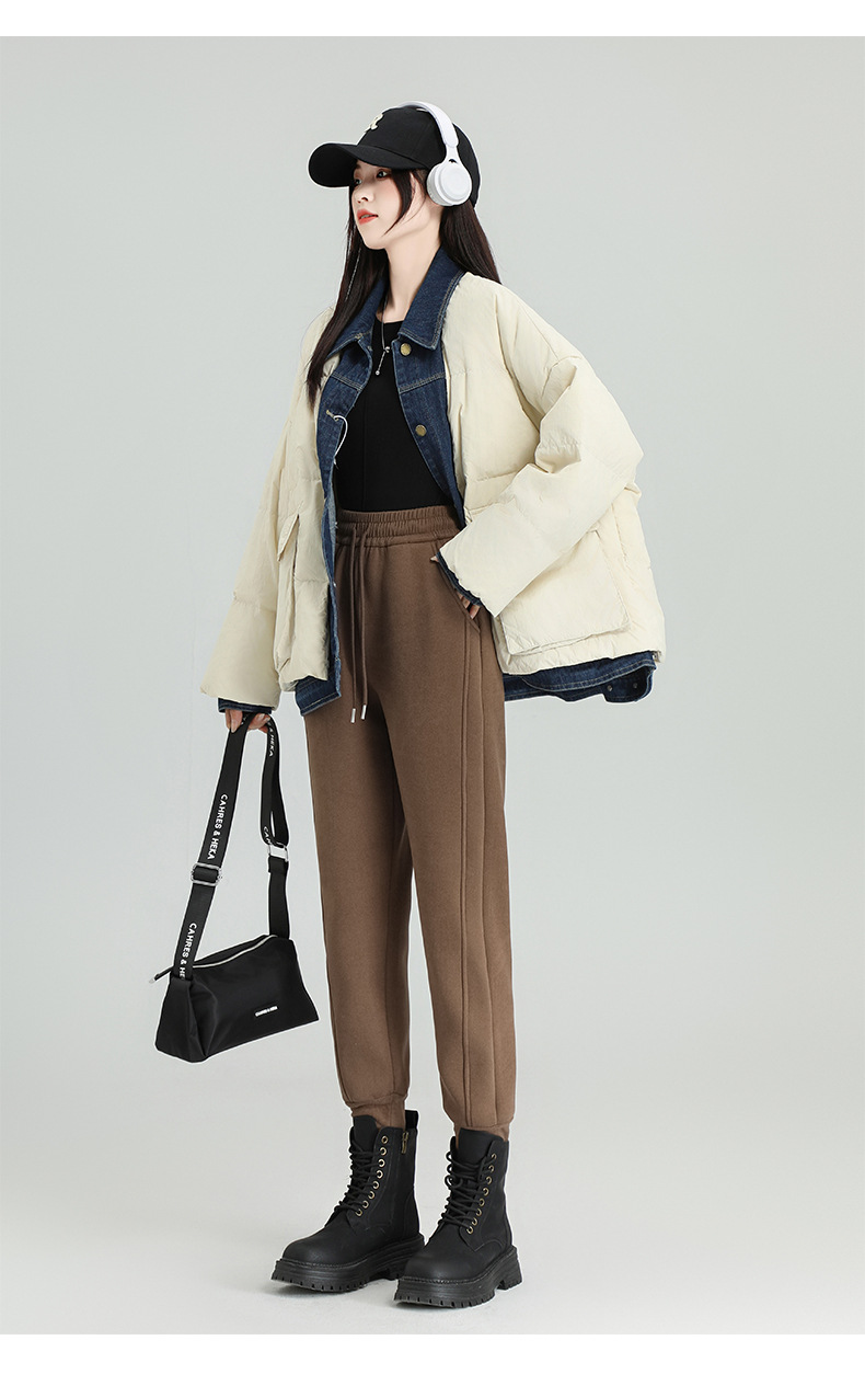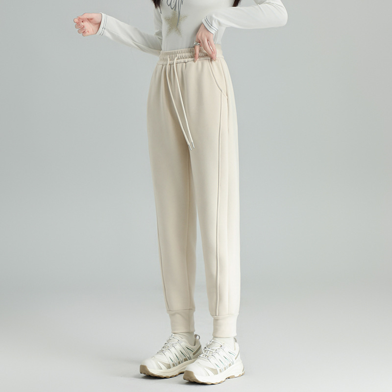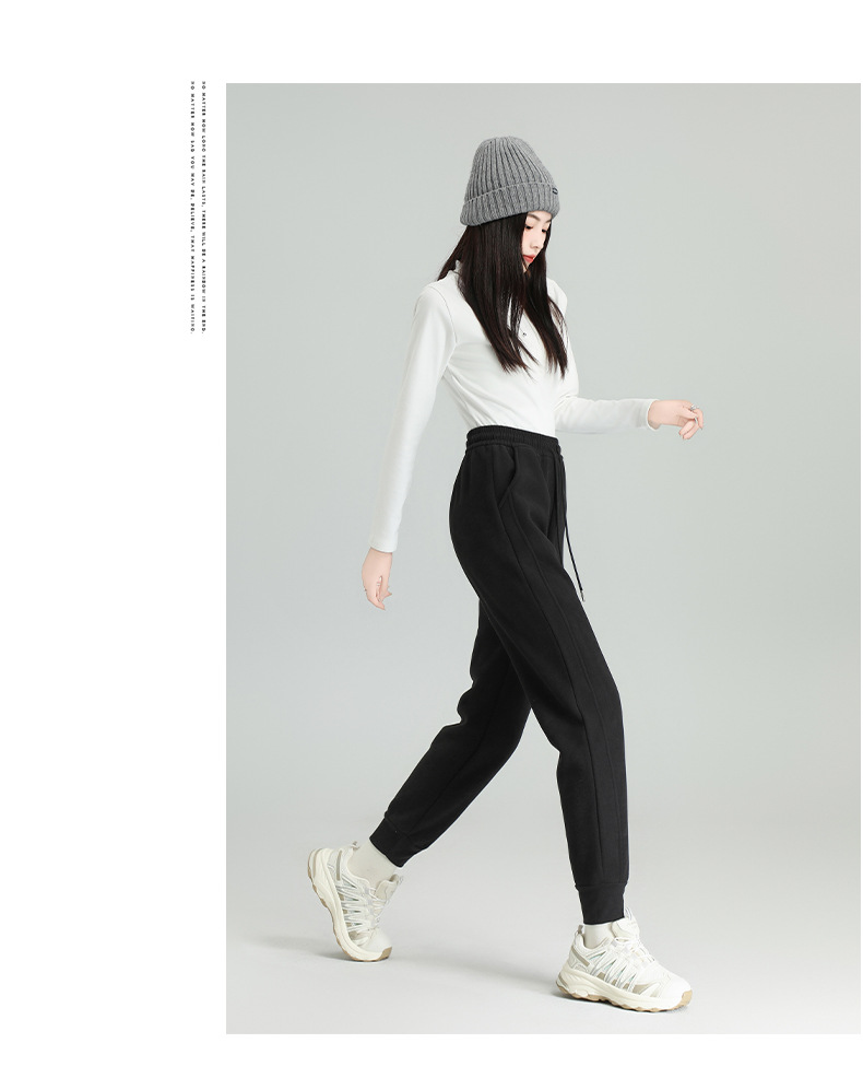 무 방풍 바지 가을과 겨울 새로운 하이 퀄리티 열 보관 따뜻한 스트레이트 다리 바지 하이 웨이스트 슬리밍 캐주얼 하렘 바지
