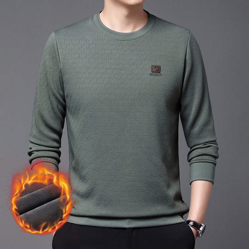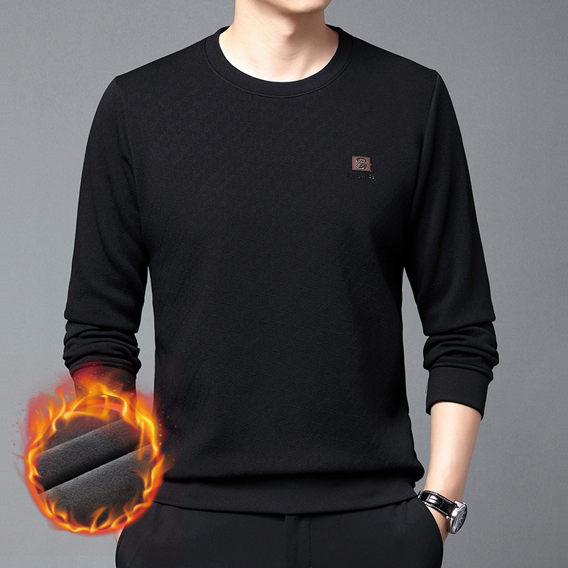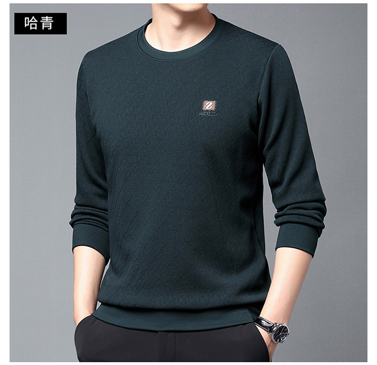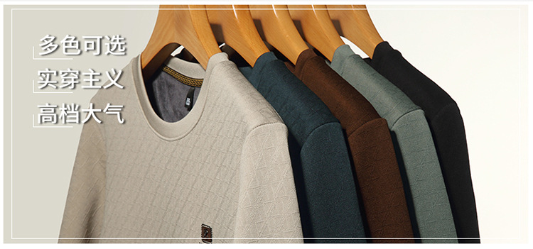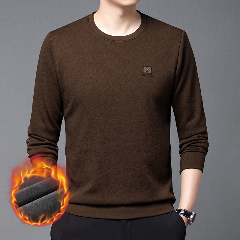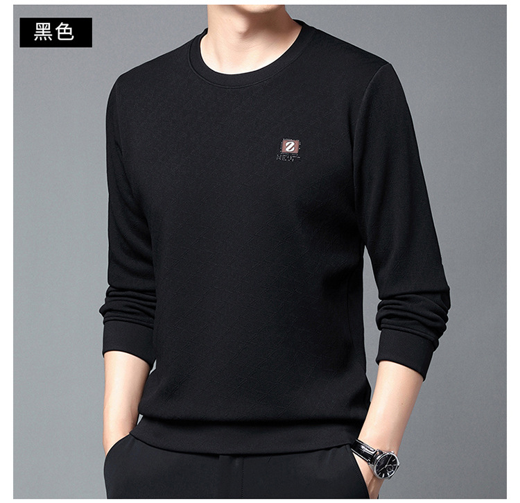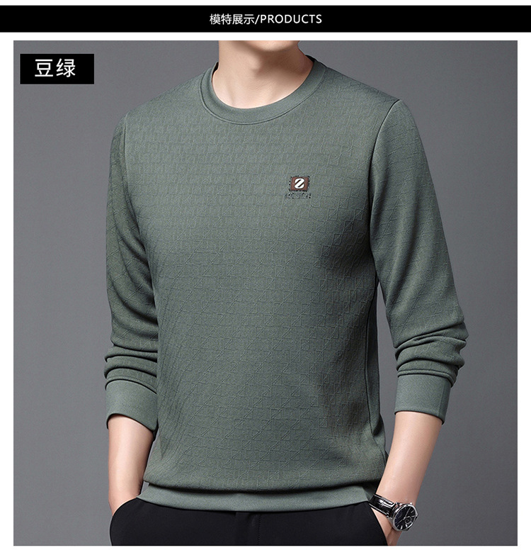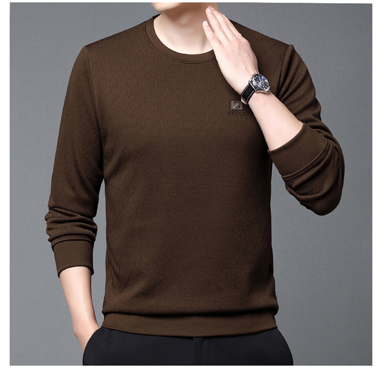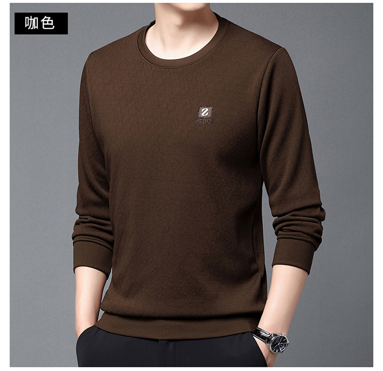 가을 겨울 신작 남성 긴팔 벨벳 스웨트 셔츠 라운드 넥 쿨 실크 코튼 티셔츠 청년 및 중년 캐주얼 따뜻한 기본 셔츠