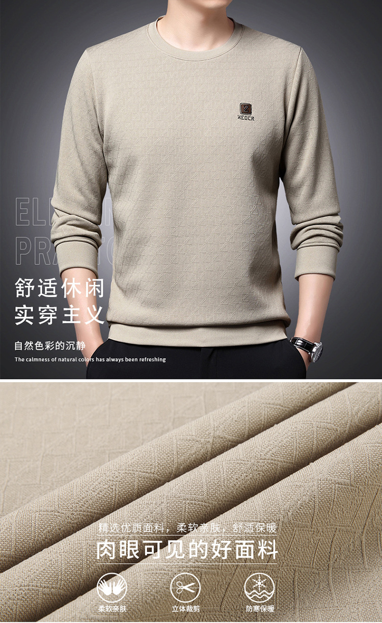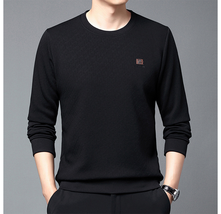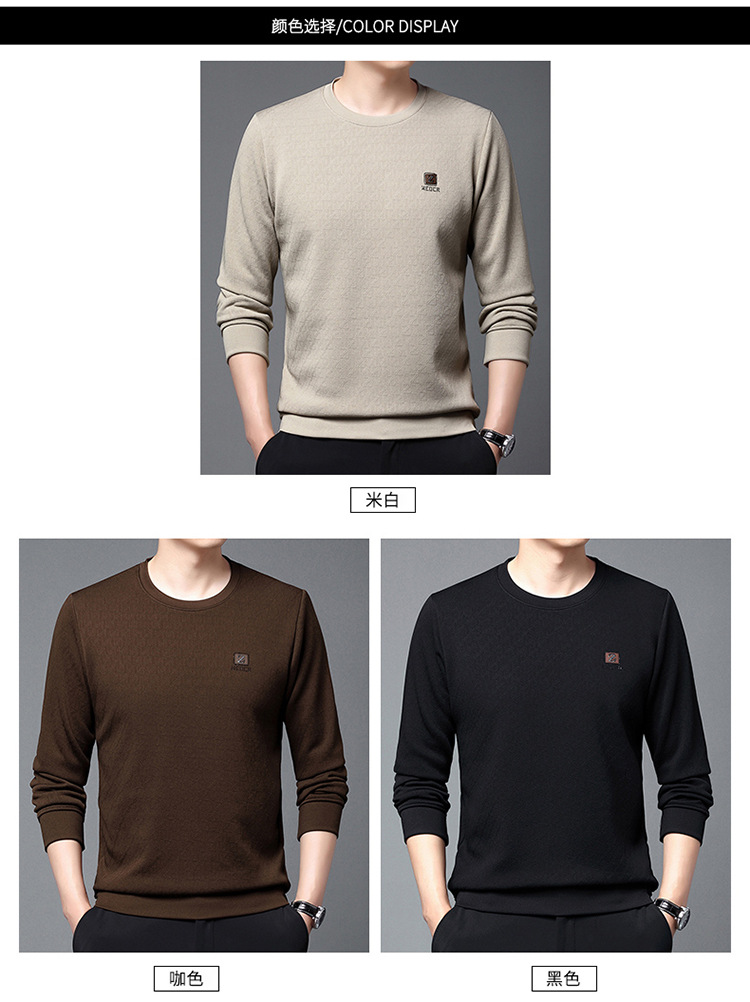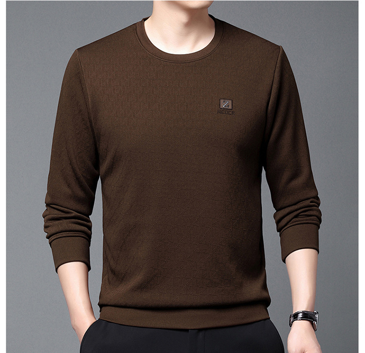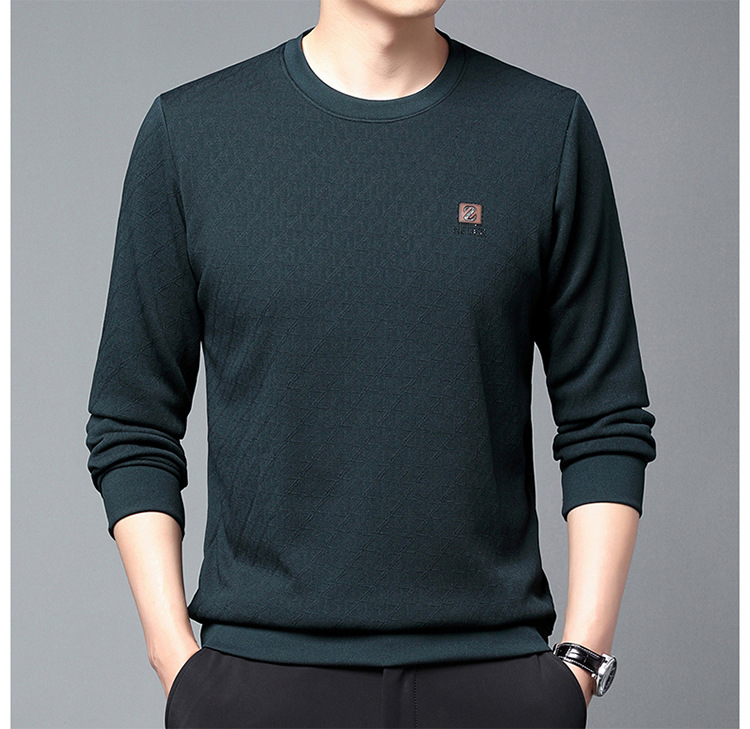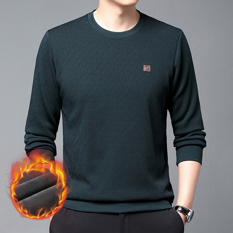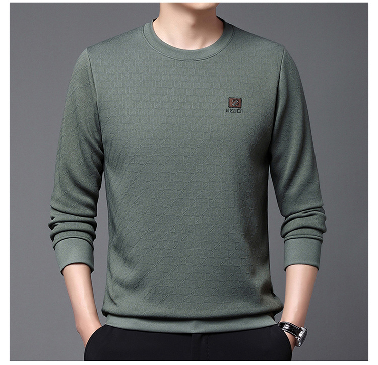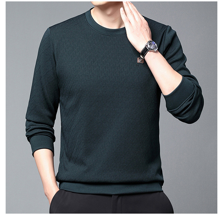 가을 겨울 신작 남성 긴팔 벨벳 스웨트 셔츠 라운드 넥 쿨 실크 코튼 티셔츠 청년 및 중년 캐주얼 따뜻한 기본 셔츠
