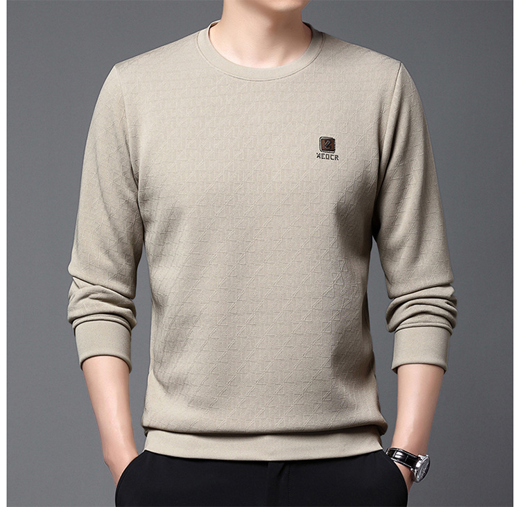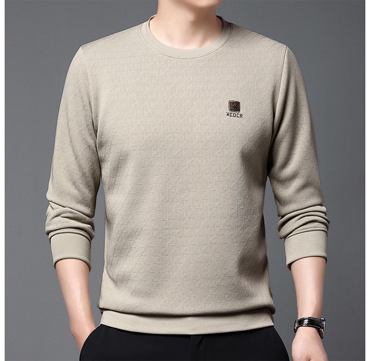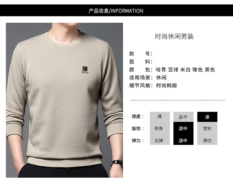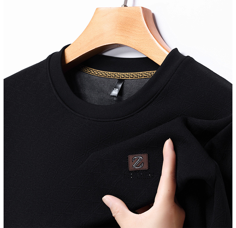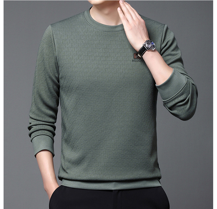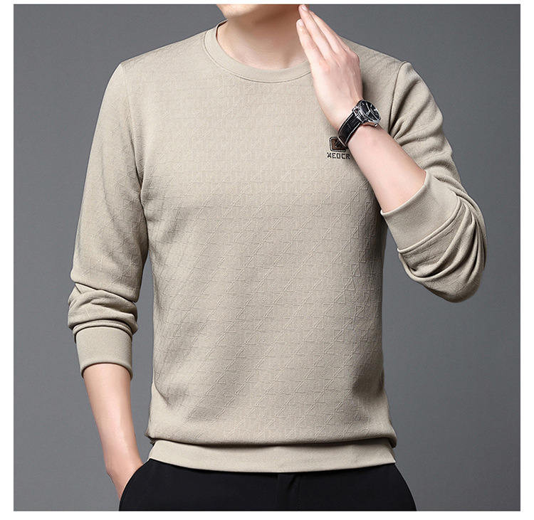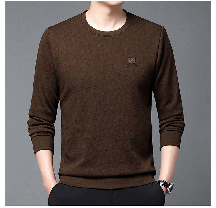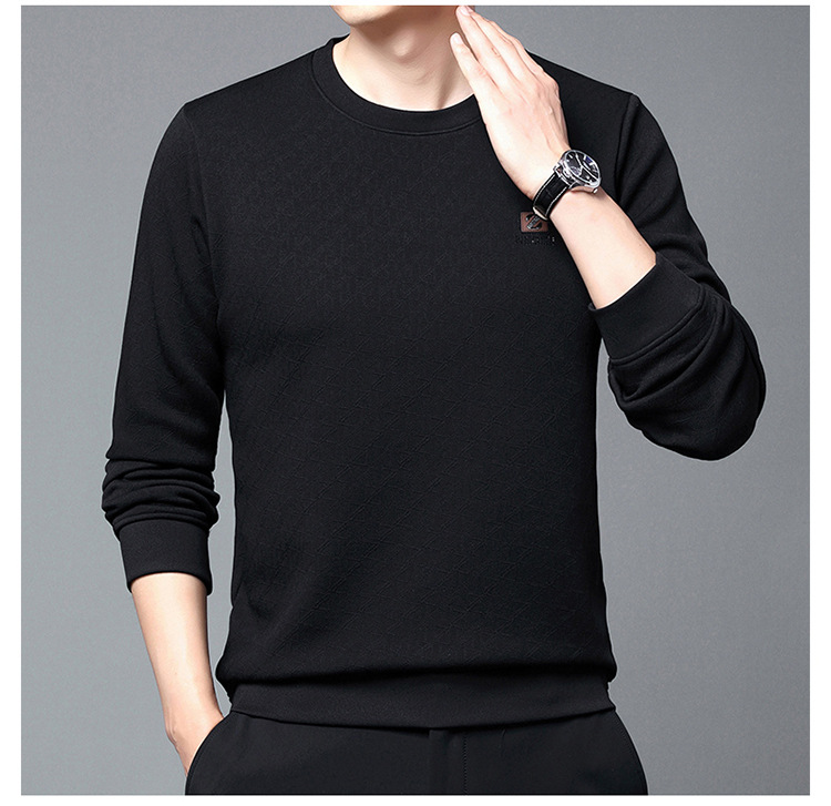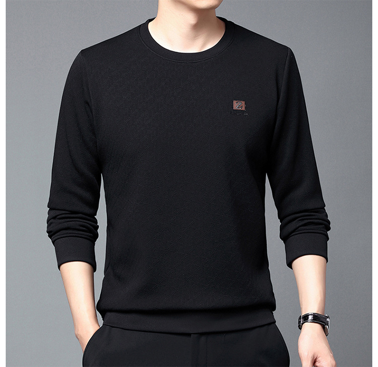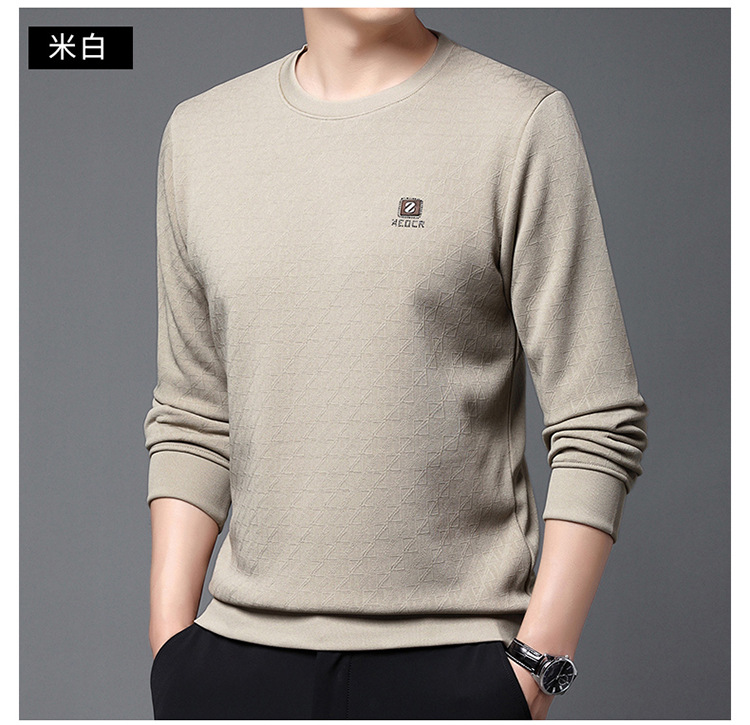 가을 겨울 신작 남성 긴팔 벨벳 스웨트 셔츠 라운드 넥 쿨 실크 코튼 티셔츠 청년 및 중년 캐주얼 따뜻한 기본 셔츠