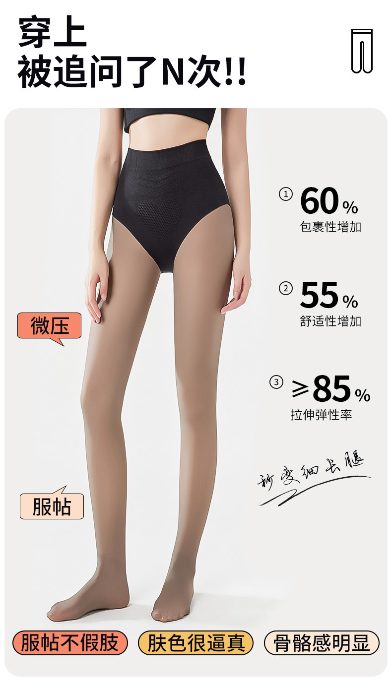 키 큰 가벼운 다리 유물 여자의 가을과 겨울 기모 검은 실크 피부-투명 하이 웨이스트 수채화 양말 봄 얇은 긴 팬티 스타킹스토어 가기