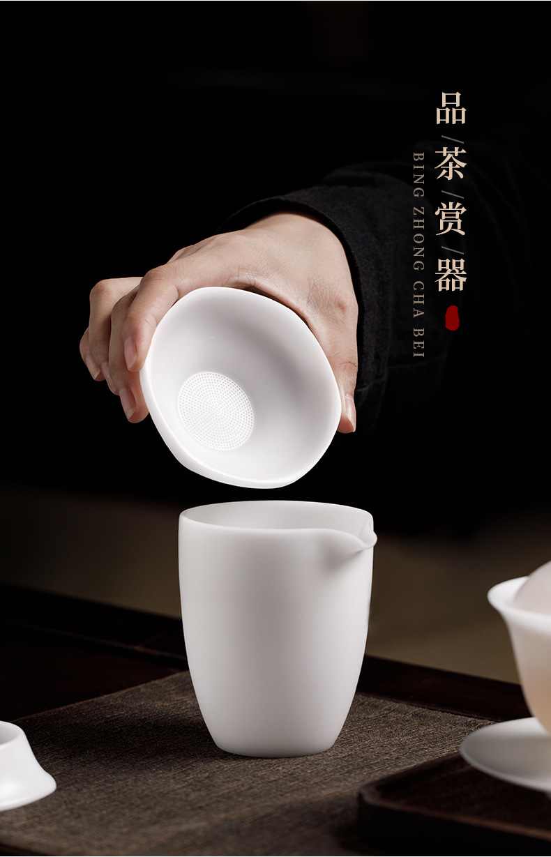 얼음 옥 도자기 흰색 도자기 공용 컵 가정용 세라믹 차 분할 차 바다 빛 럭셔리 고급 유니폼 컵 쿵푸 차 세트스토어 가기