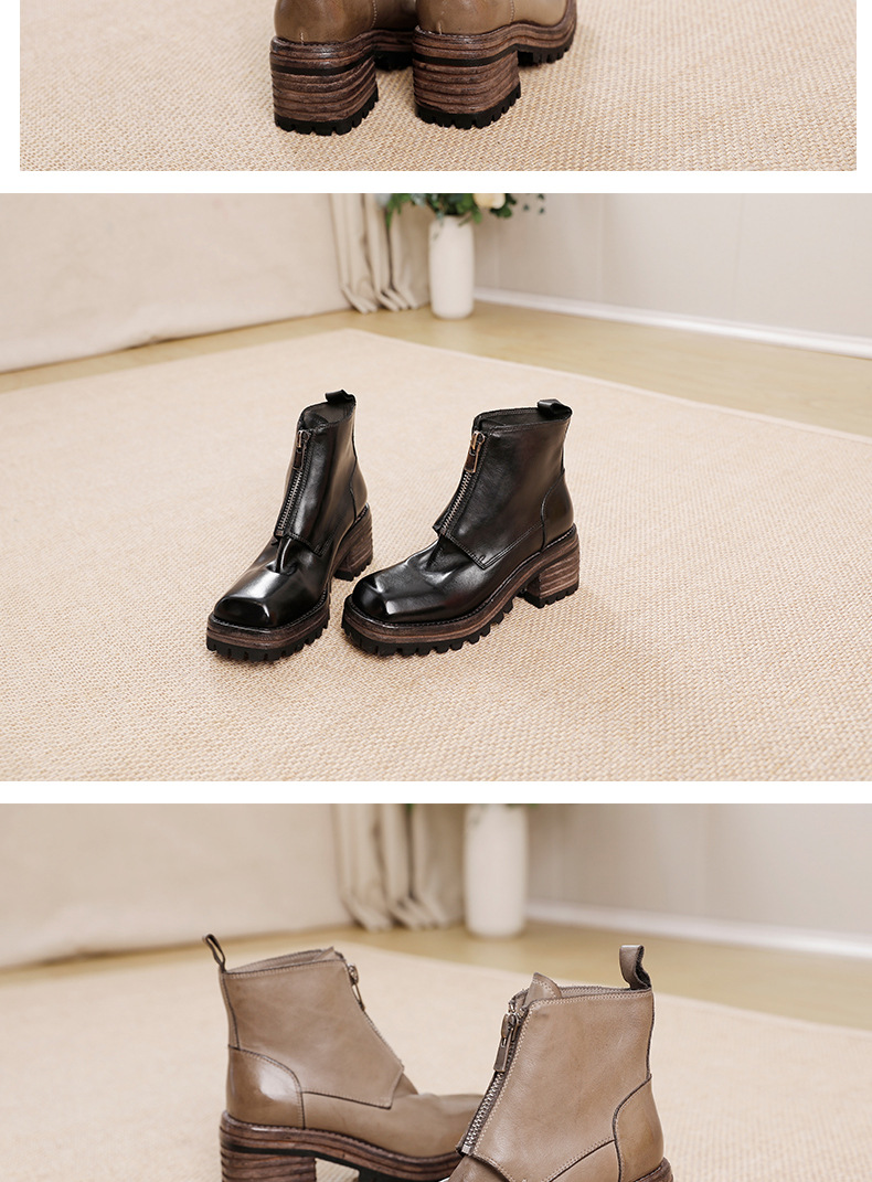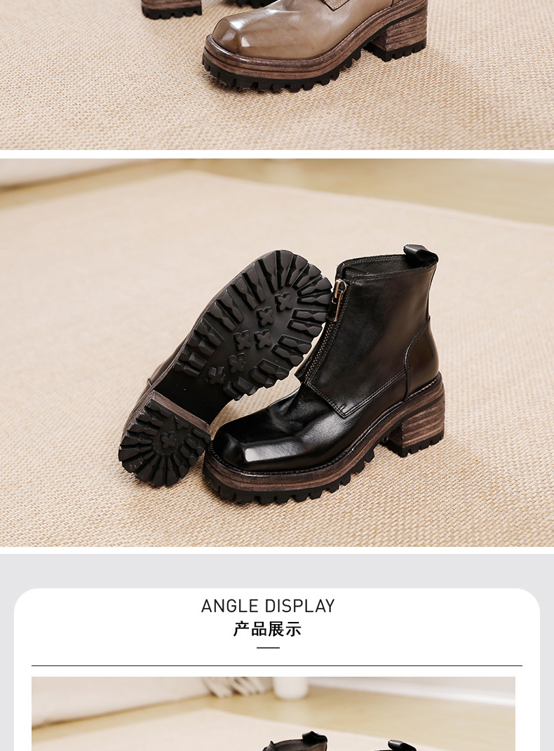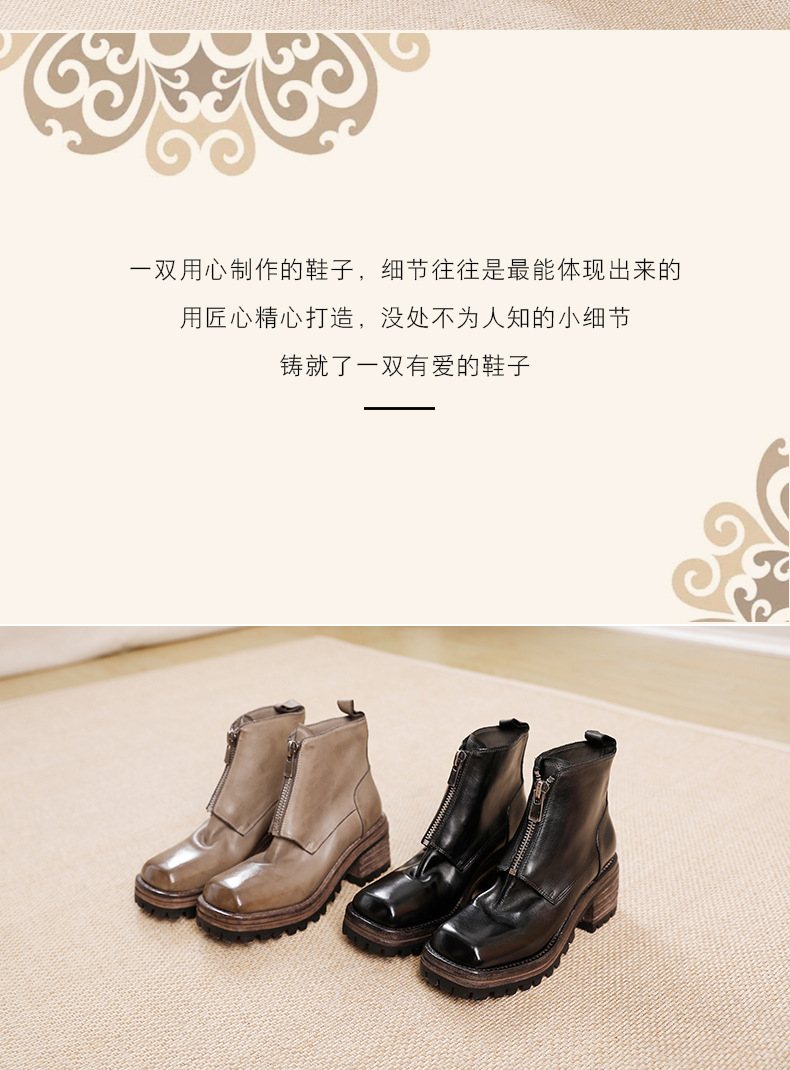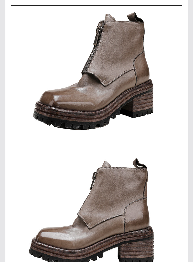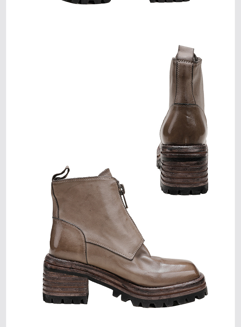 워싱 소가죽 청키 힐 마틴 부츠 여성의 다시 고대 가을과 겨울 2023 새로운 스퀘어 헤드 방수 플랫폼 짧은 부츠