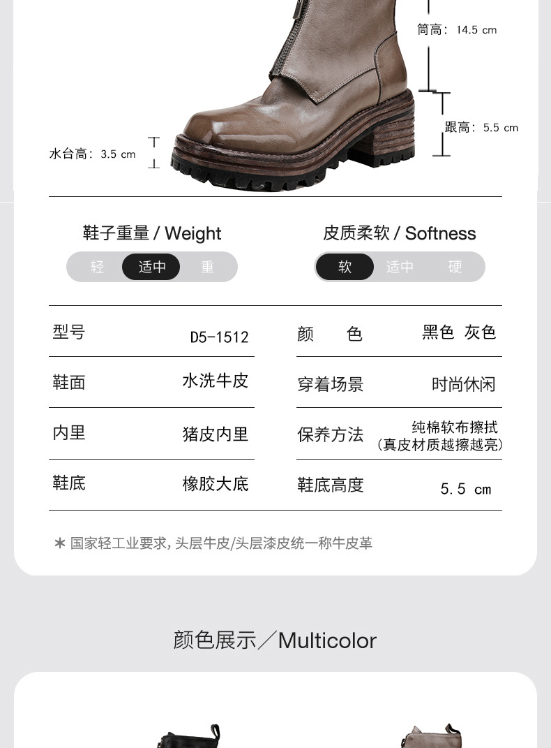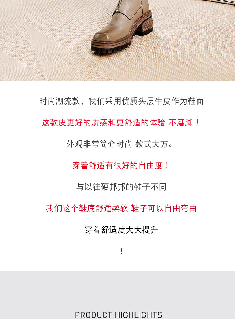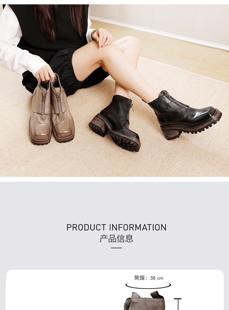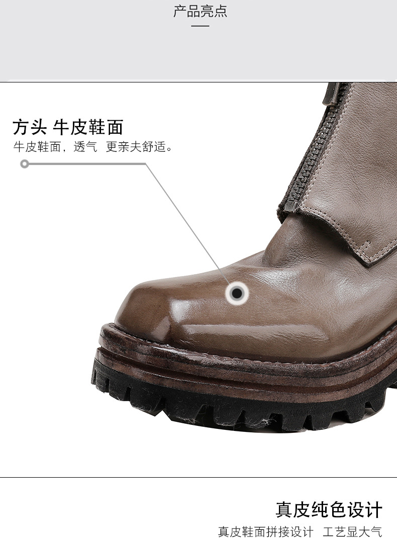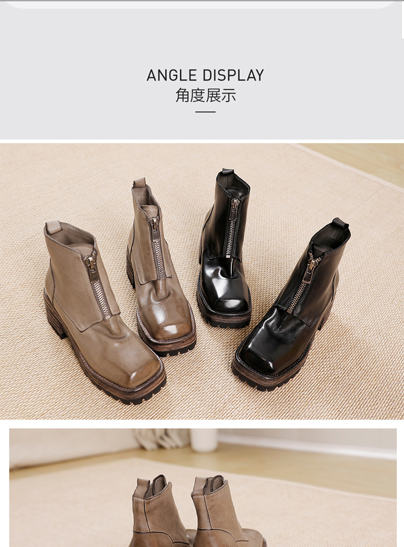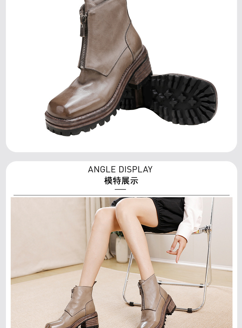 워싱 소가죽 청키 힐 마틴 부츠 여성의 다시 고대 가을과 겨울 2023 새로운 스퀘어 헤드 방수 플랫폼 짧은 부츠