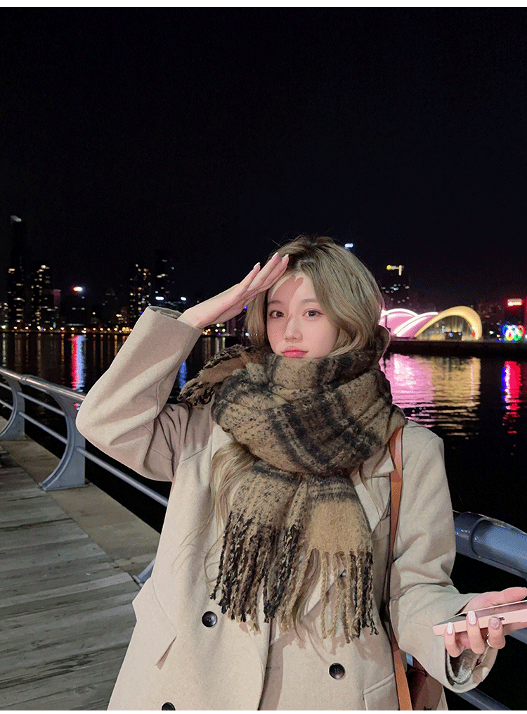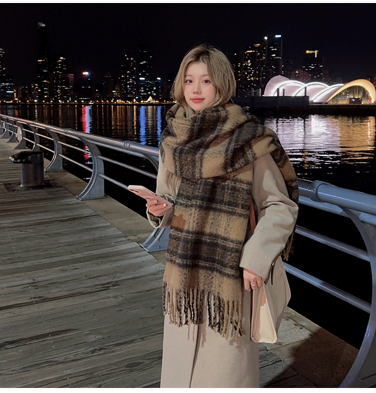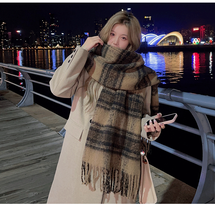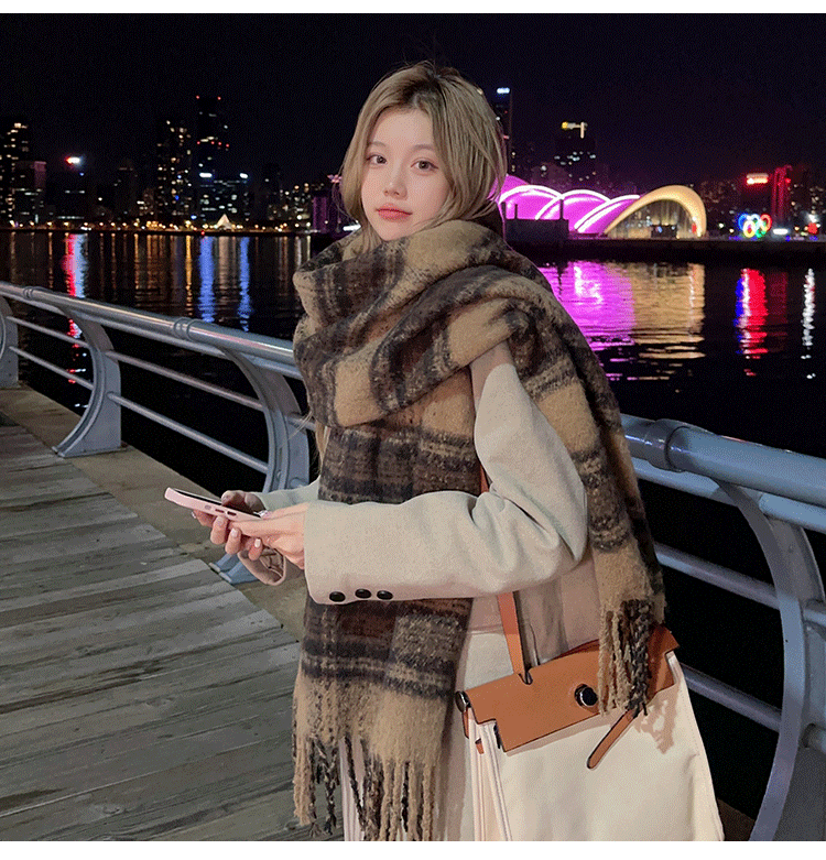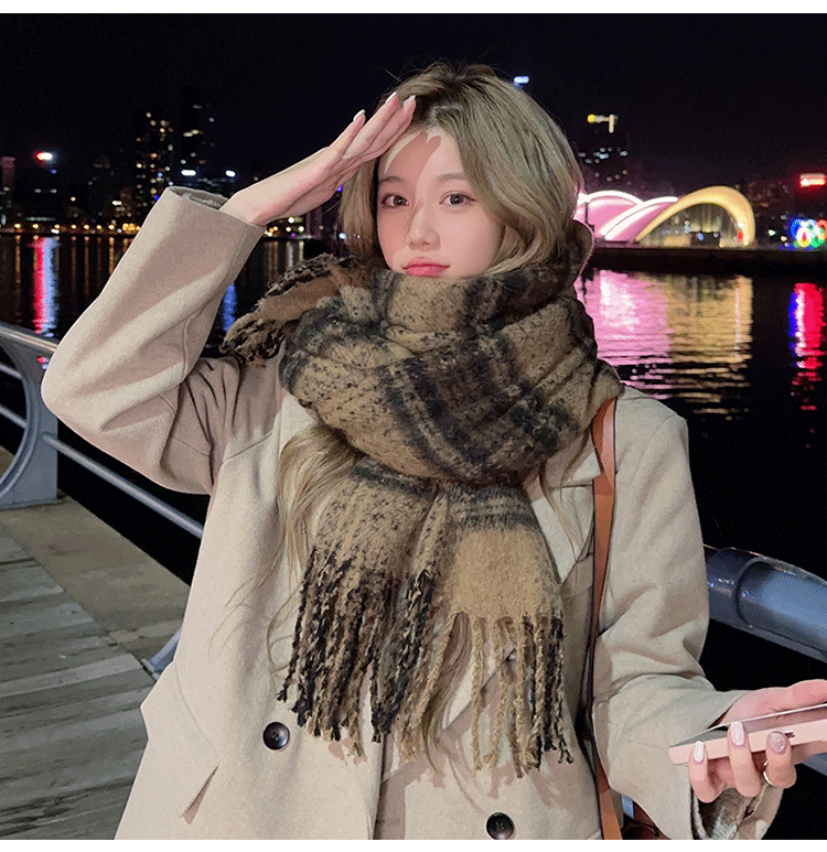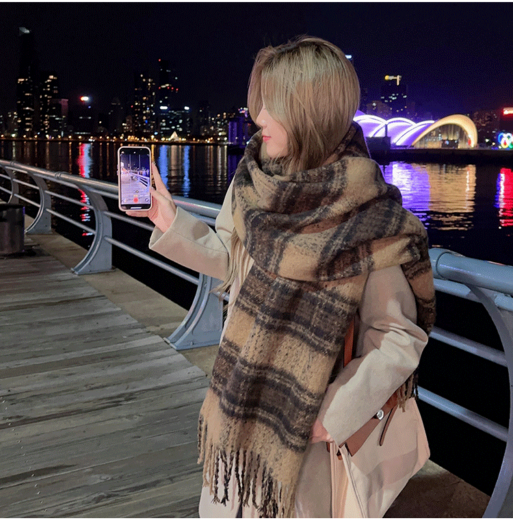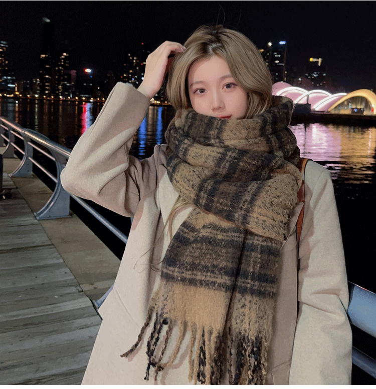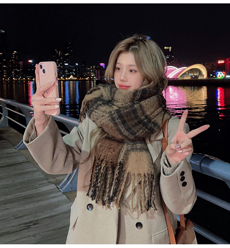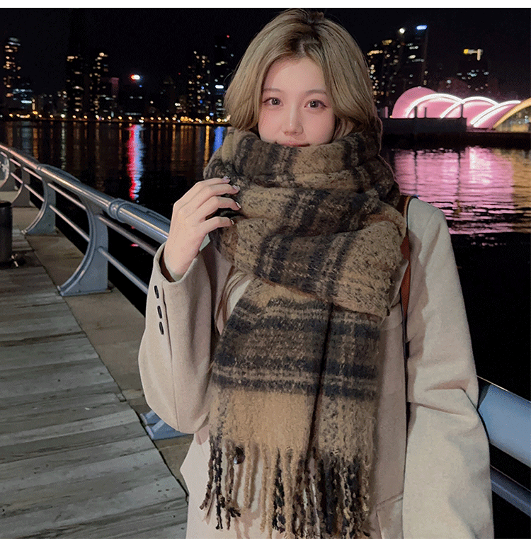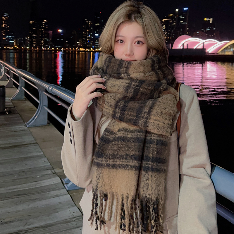 Maillard 스타일 스카프 여성용 가을과 겨울 격자 무늬 스카프 한국식 모든 매치 두꺼운 따뜻한 이중 사용 숄 학생 커피