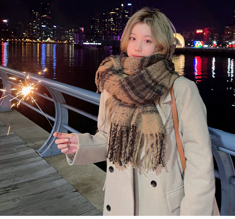 Maillard 스타일 스카프 여성용 가을과 겨울 격자 무늬 스카프 한국식 모든 매치 두꺼운 따뜻한 이중 사용 숄 학생 커피스토어 가기