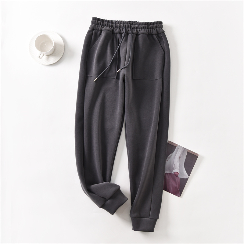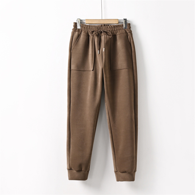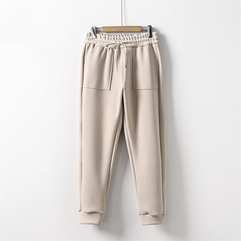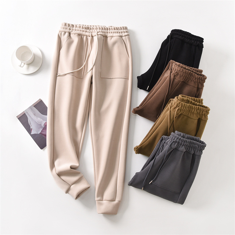 가을과 겨울 벨벳 방풍 바지 여성 캐주얼 바지 두꺼운 스웨트 팬츠 올매치 루즈한 슬리밍 스포츠 바지 겉옷 바지