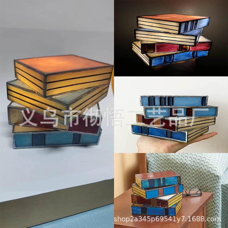 彩色玻璃叠书灯叠书玻璃灯Stained Glass Stacked Books Lamp