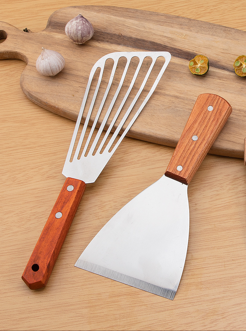가정용 스테인레스 스틸 필링 삽 나무 손잡이 팬케이크 삽 Teppanyaki 삽 핸드 케이크 삽 요리 스테이크 삽 주방 도구