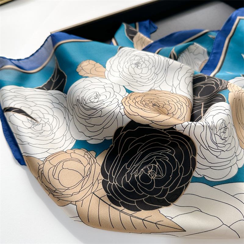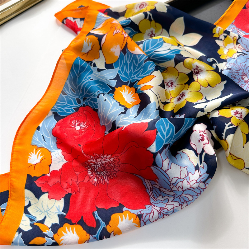 프랑스 복고풍 꽃 스카프 모조 실크 70 실크 스카프 인쇄 작은 사각형 스카프 봄과 가을 스카프 넥타이 머리 장식 머리 스카프 여성용