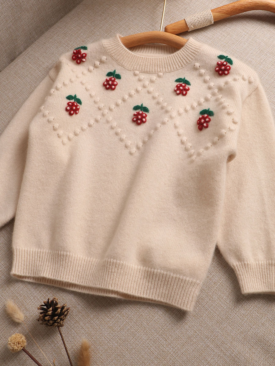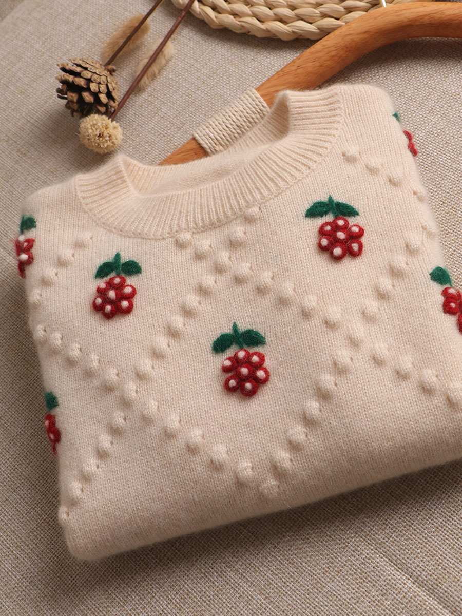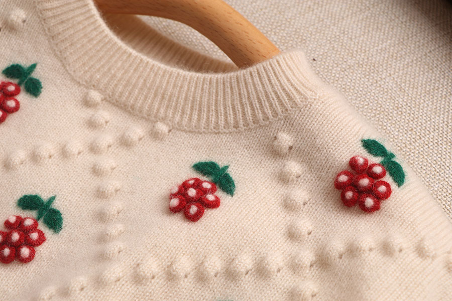 공장 세대 헤어 걸 캐시미어 스웨터 수제 꽃 쌀 흰색 크루 넥 여성용 보물 니트 스웨터 달콤한 외국 스타일 두꺼운스토어 가기
