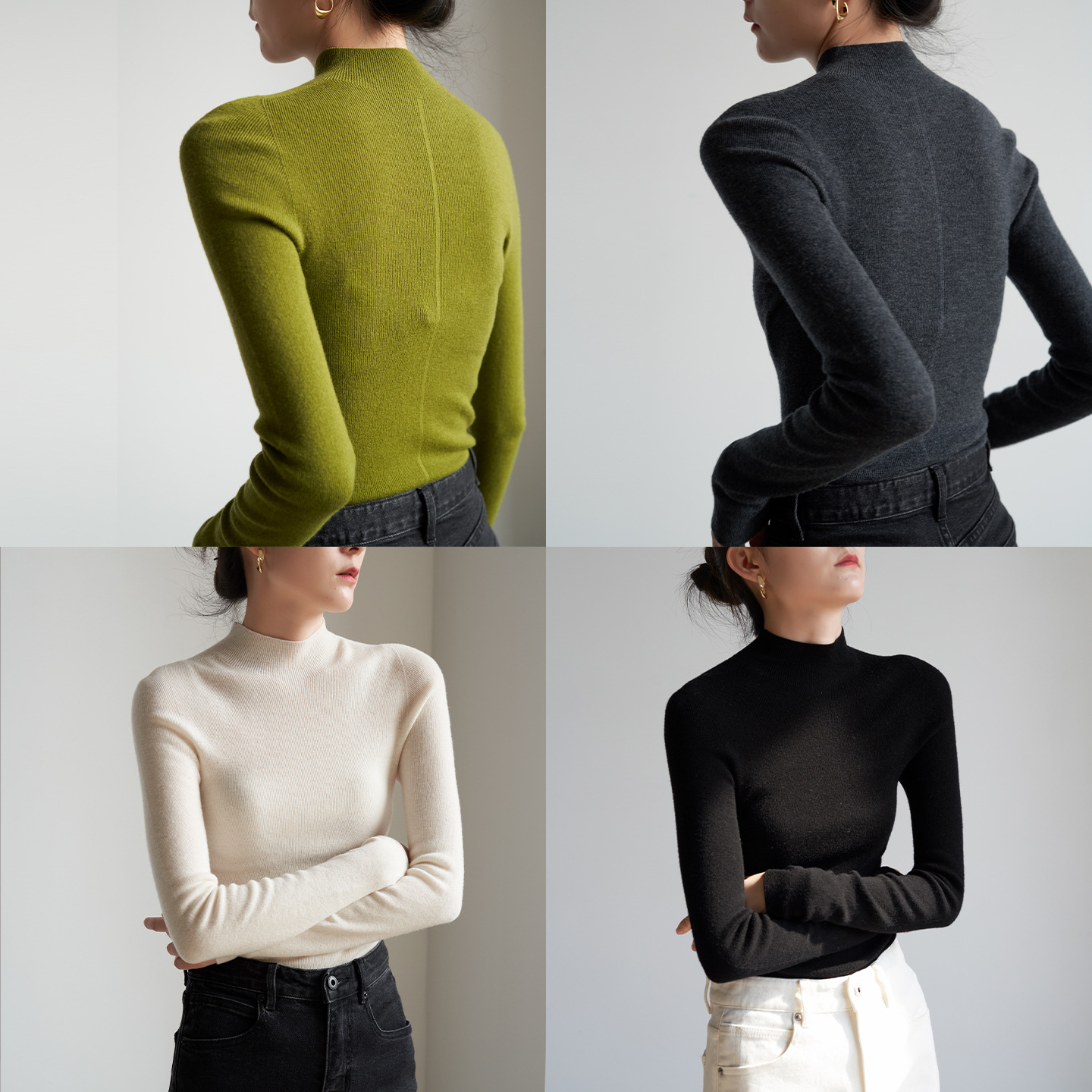 SS STUDIO 심리스 원피스 통근룩 하프 터틀넥 울 니트 여성 가을 겨울 베이스 레이어 단색스토어 가기
