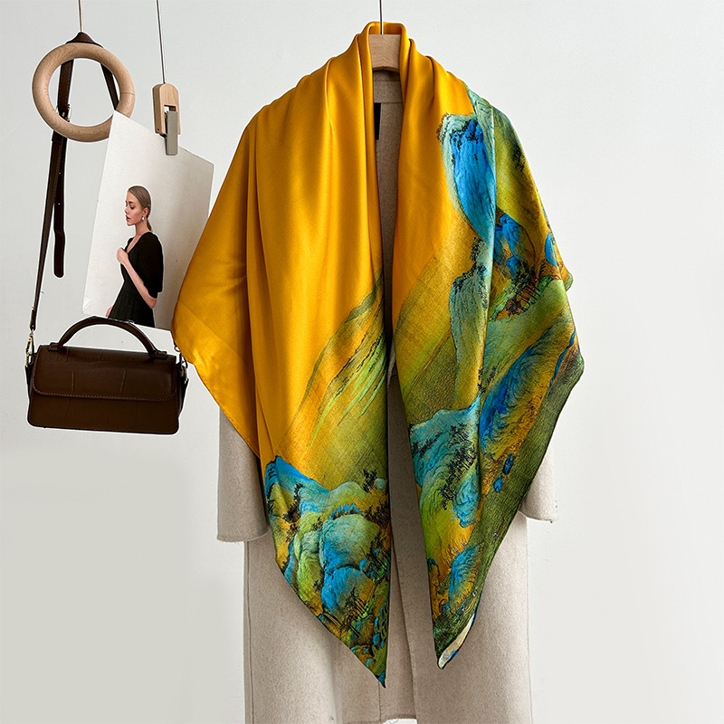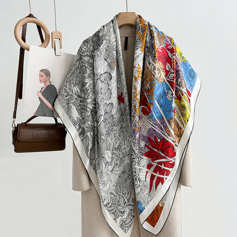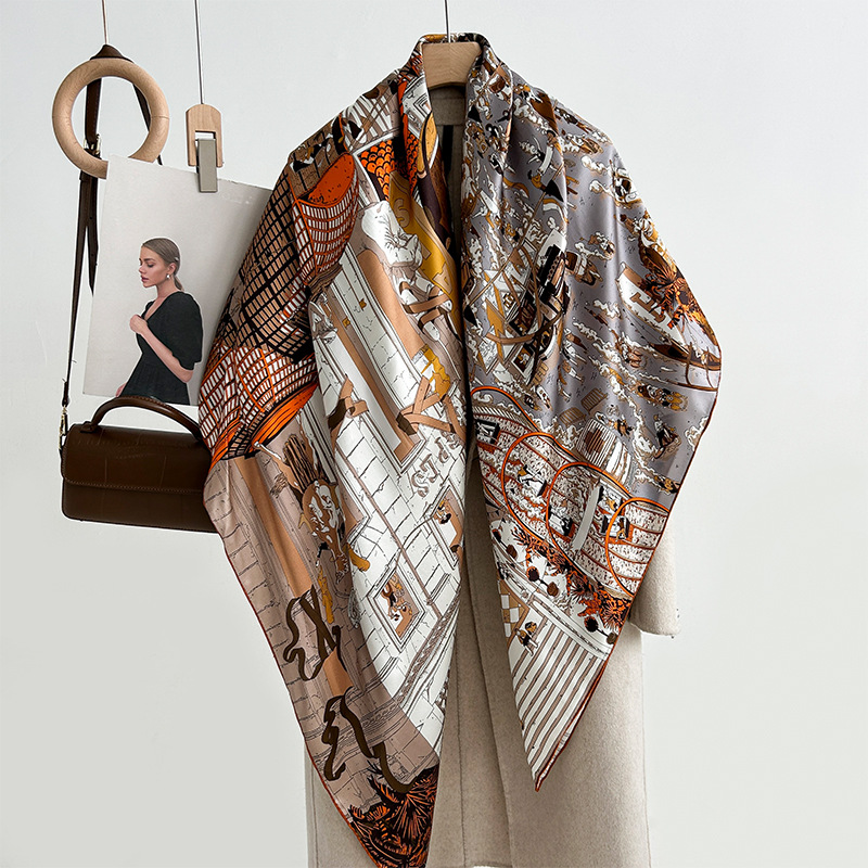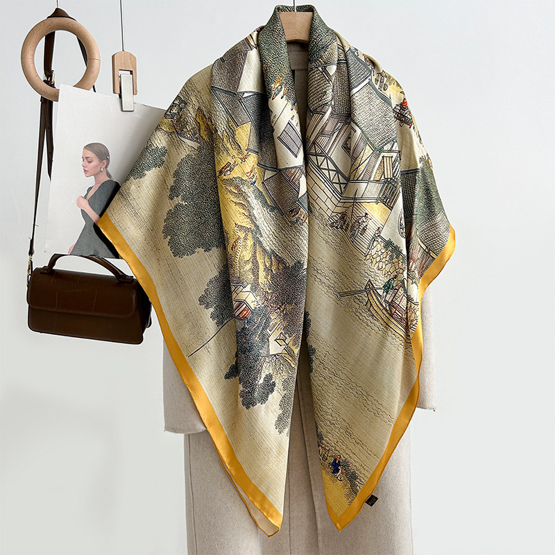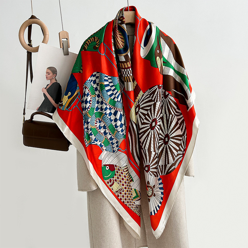 실크 스카프 여성용 2023 새로운 스카프 가을과 겨울 140 숄 여성용 뽕나무 실크 대형 스퀘어 스카프 고급 감각스토어 가기
