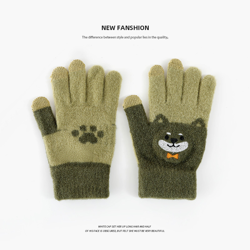 두꺼운 장갑 겨울 따뜻한 기모 두꺼운 터치 스크린 장갑 단색 다섯 손가락 야외 터치 스크린 니트 장갑스토어 가기