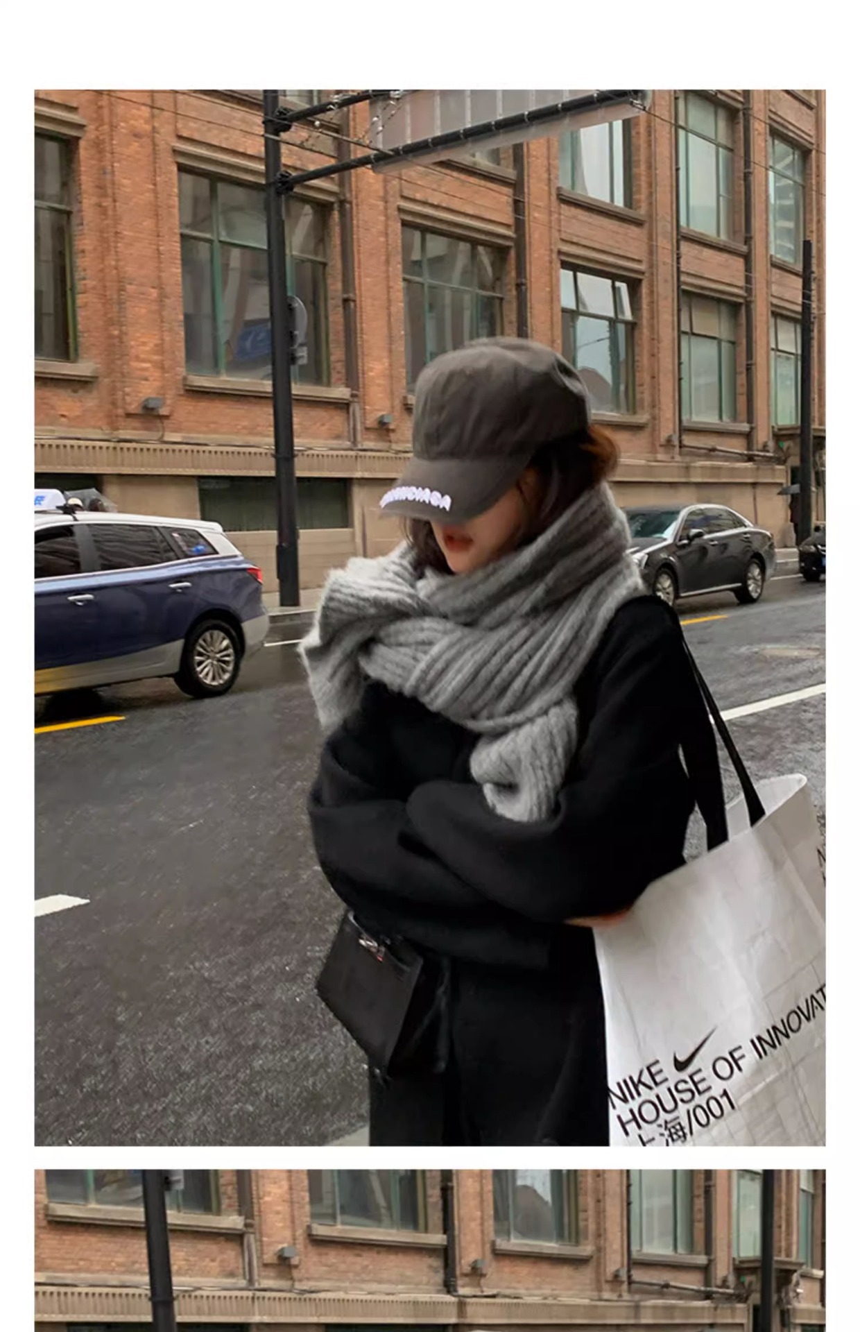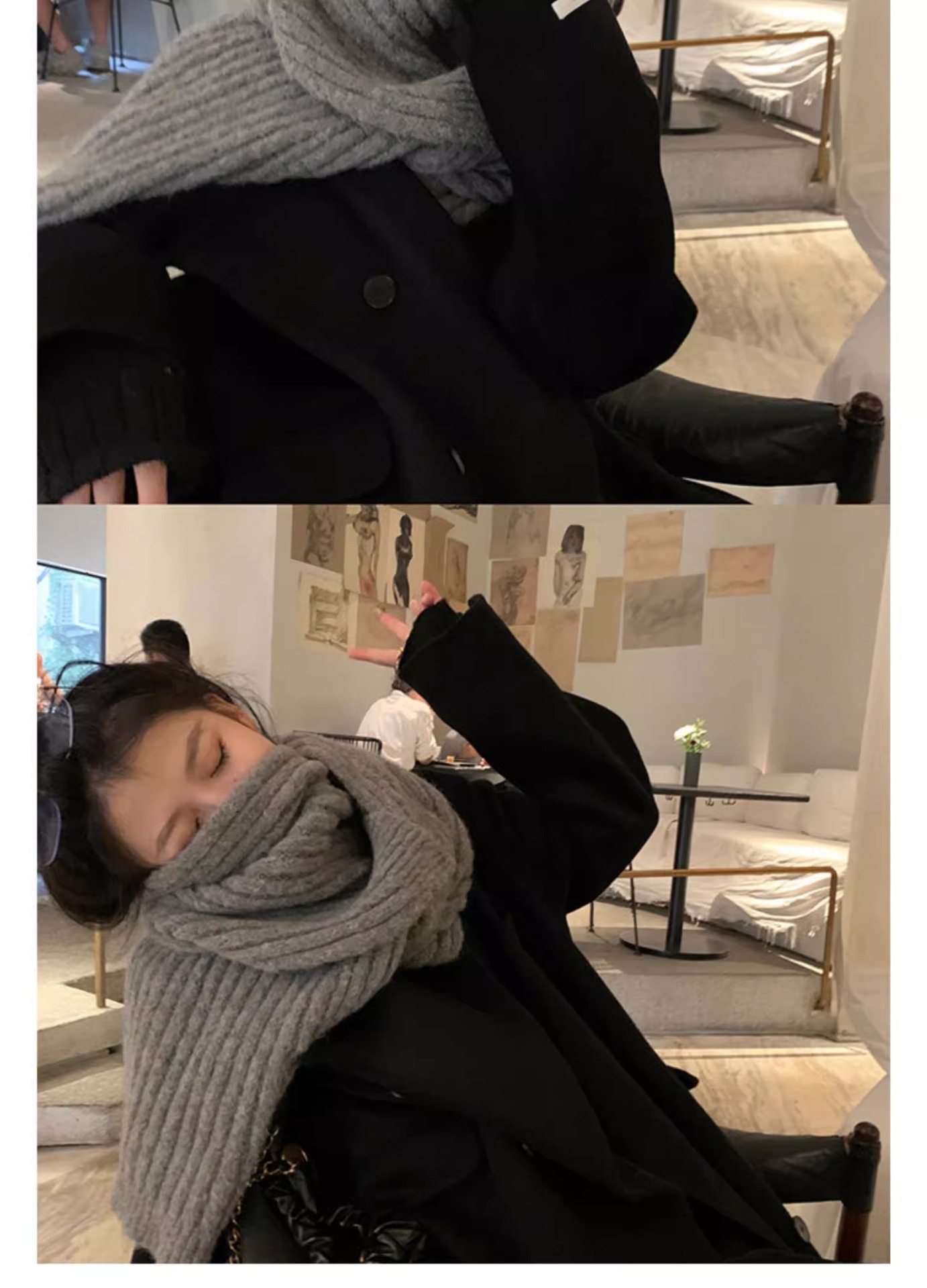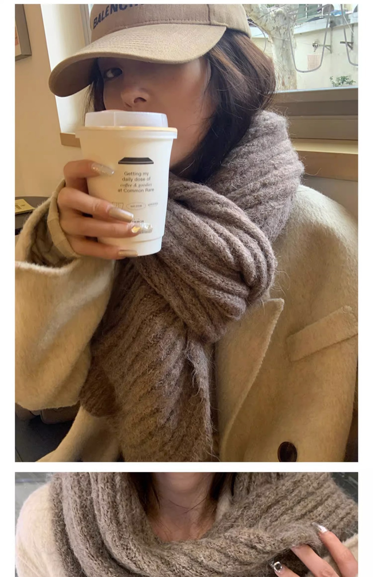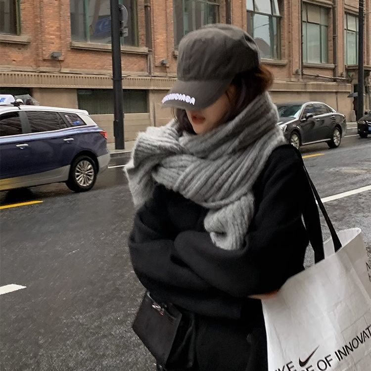 여성용 일본과 한국 스타일 스카프 가을과 겨울 방한 모든 매치 롱 니트 스트라이프 두꺼운 따뜻한 울 스카프 여성용 숄스토어 가기