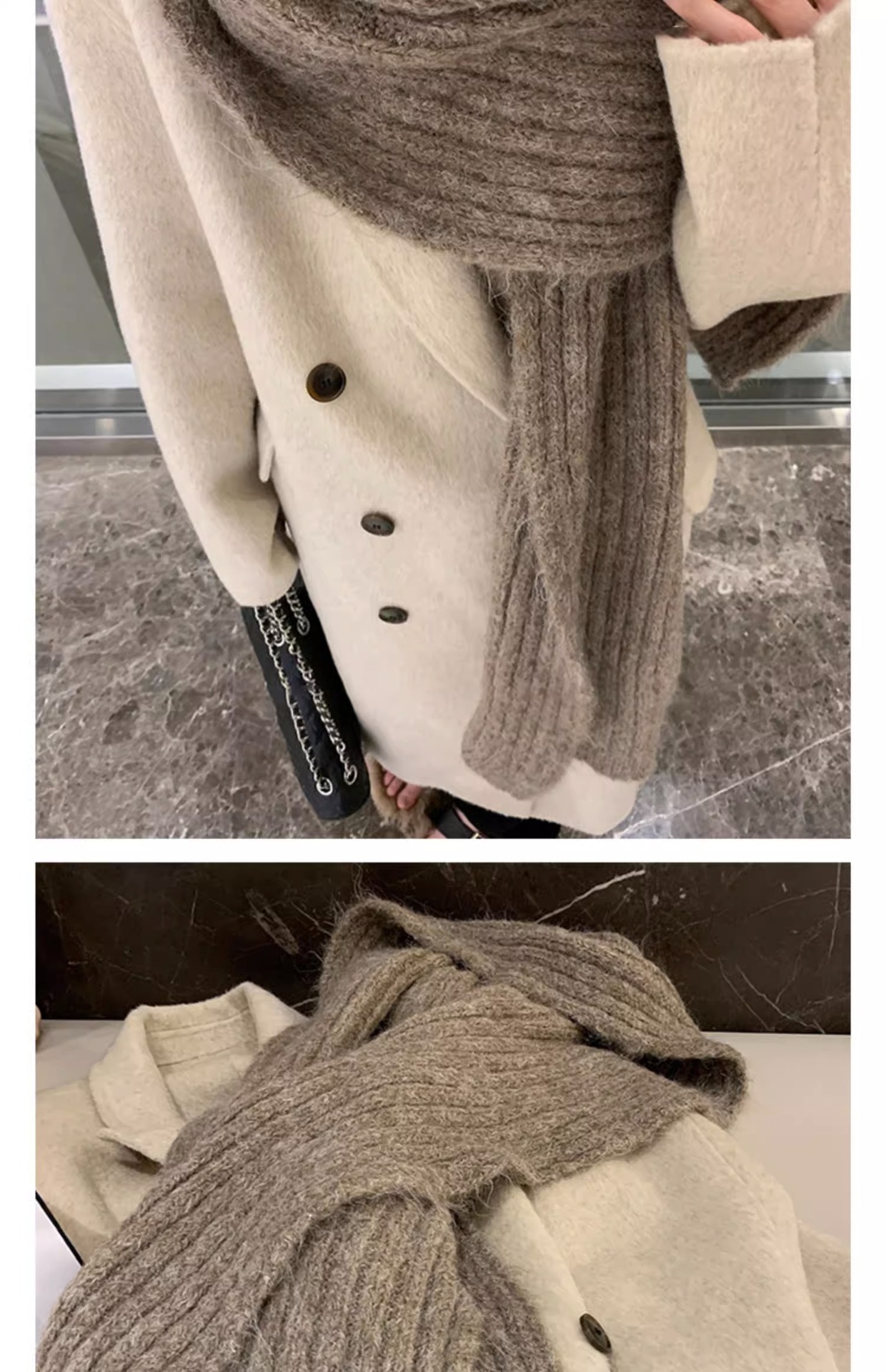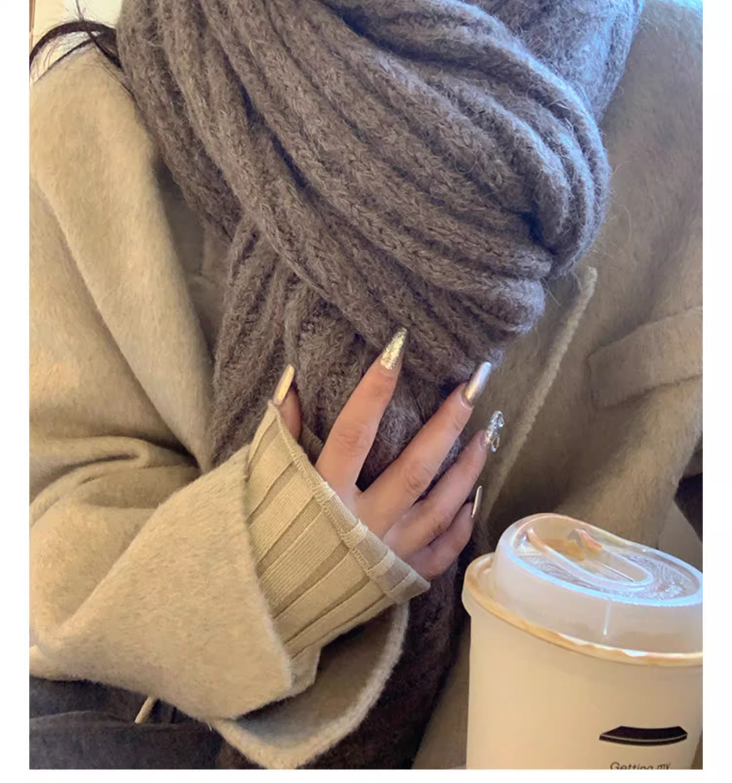 여성용 일본과 한국 스타일 스카프 가을과 겨울 방한 모든 매치 롱 니트 스트라이프 두꺼운 따뜻한 울 스카프 여성용 숄