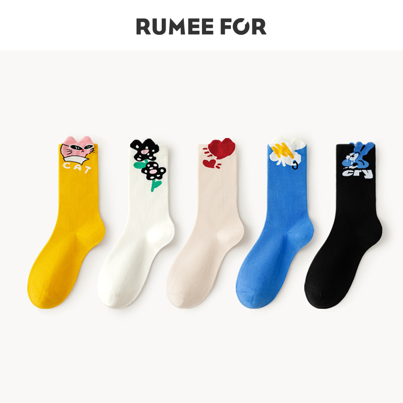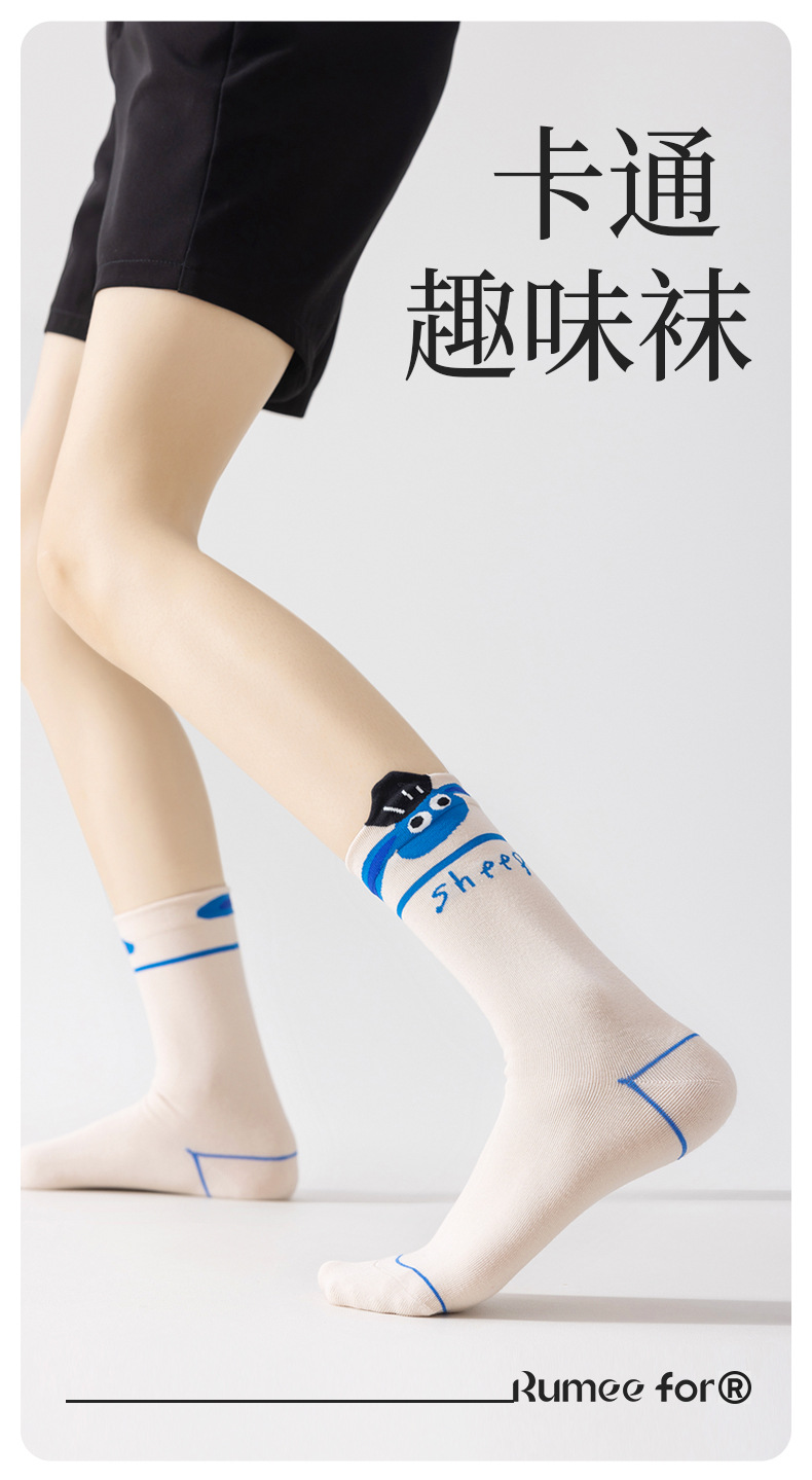 루미 미끄럼 방지 양말 여성용 봄 가을 중목 양말 인스 트렌드 일본 스타일 다용도 땀 흡수 트렌디 커플 남성용 면 양말스토어 가기