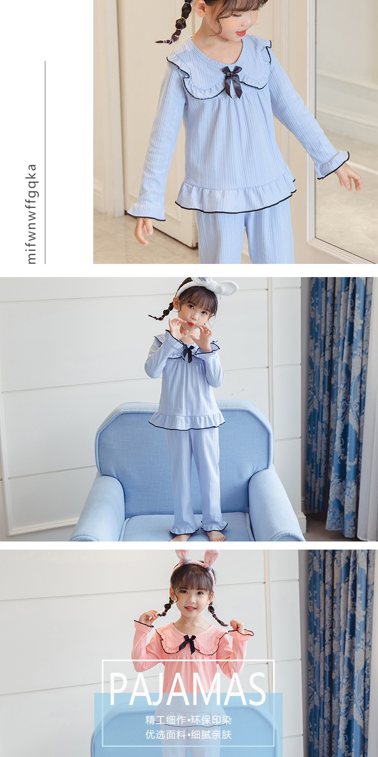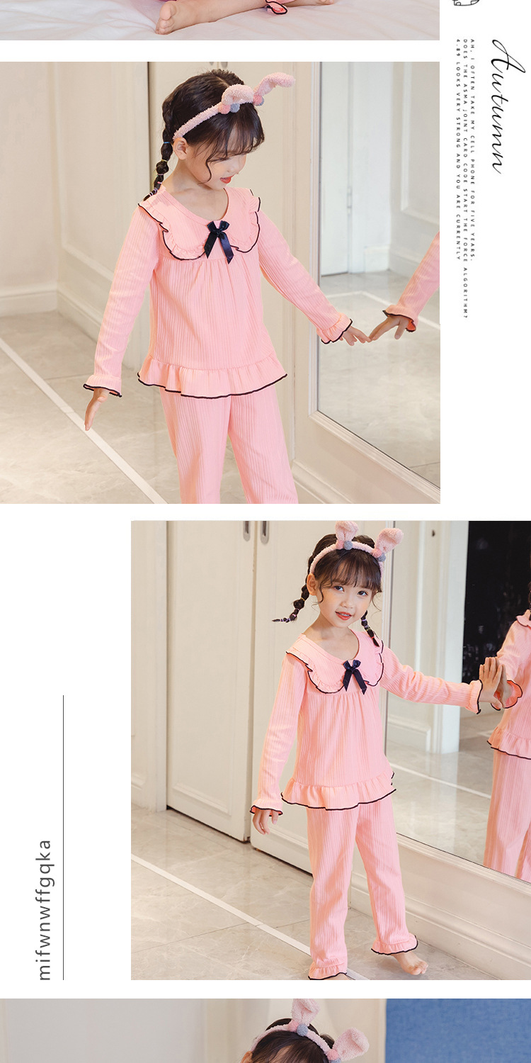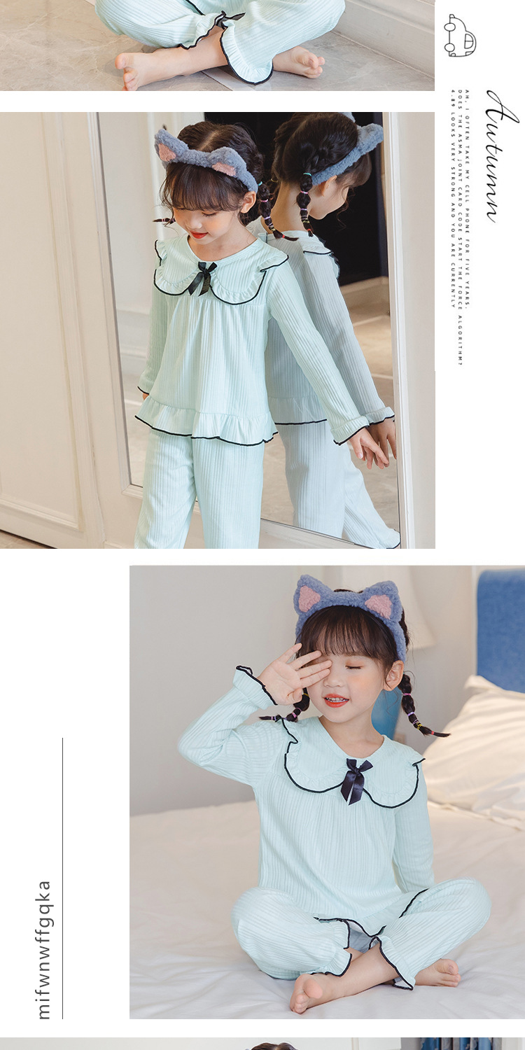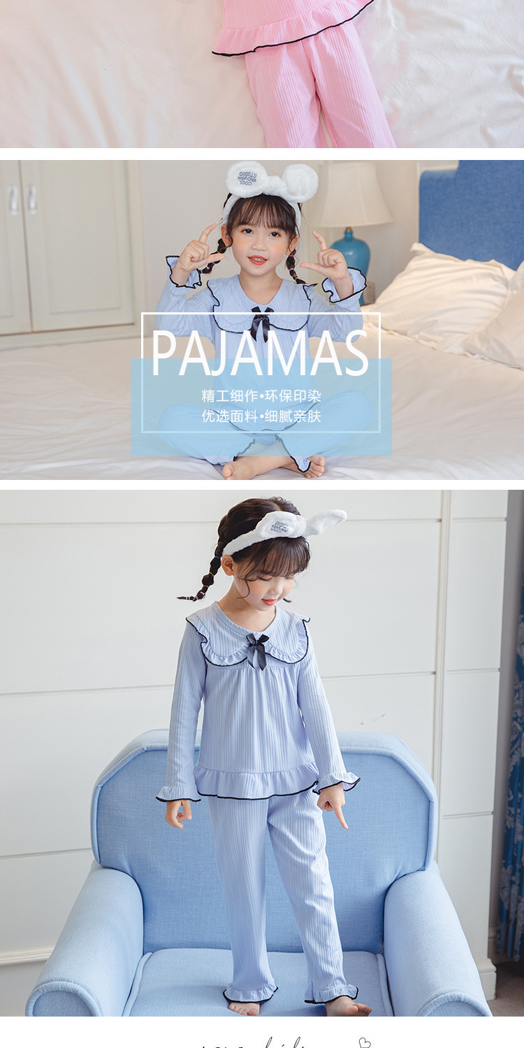 한국 어린이 단색 잠옷 봄과 가을 긴 소매 면 세트 공주 스타일 소녀 중간 및 큰 어린이 가정 의류스토어 가기