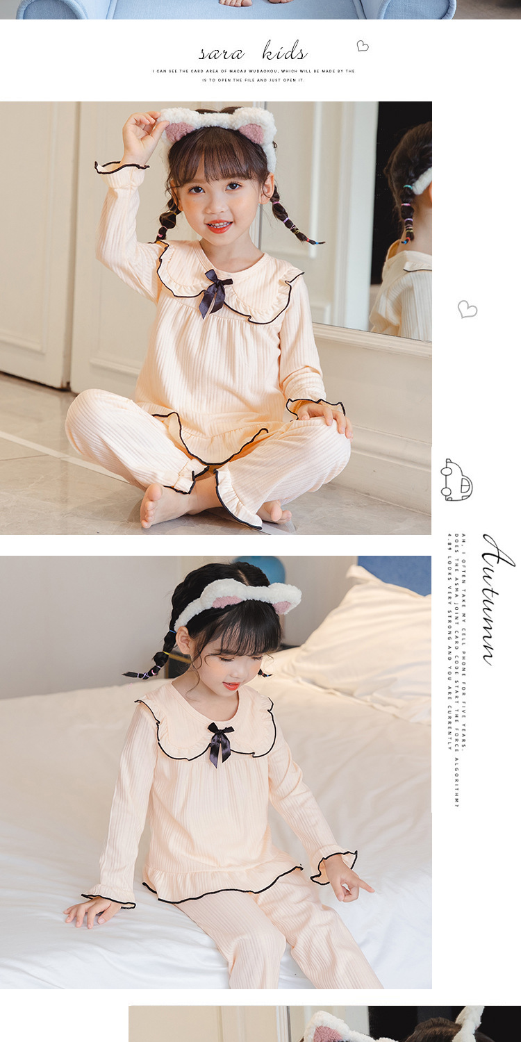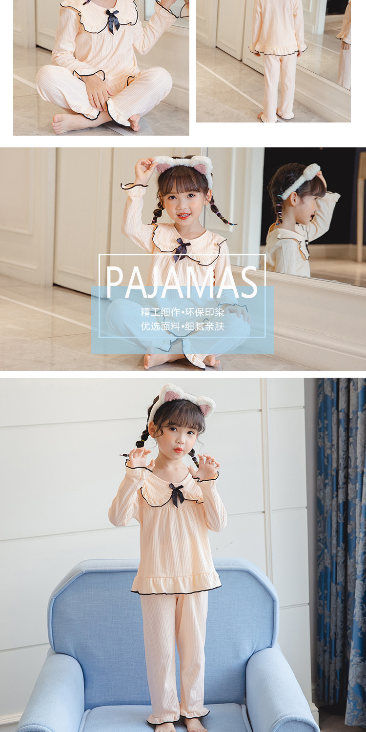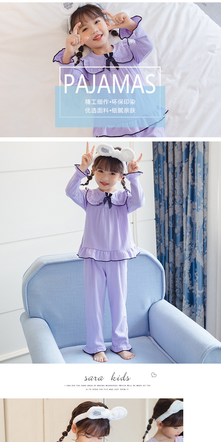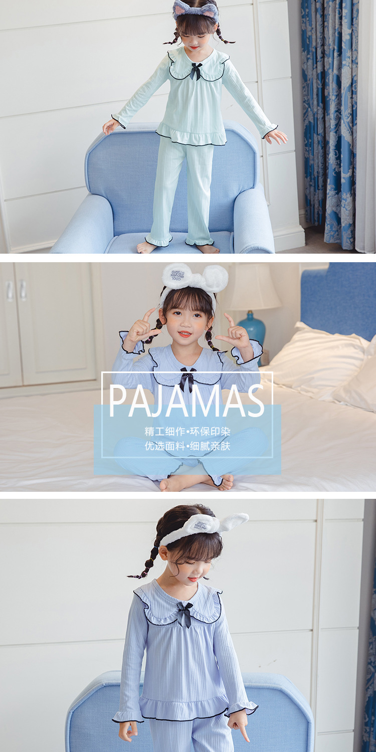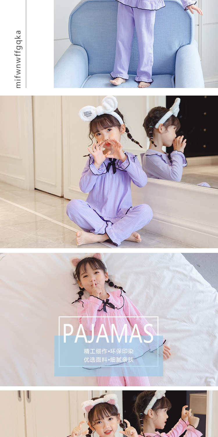 한국 어린이 단색 잠옷 봄과 가을 긴 소매 면 세트 공주 스타일 소녀 중간 및 큰 어린이 가정 의류스토어 가기
