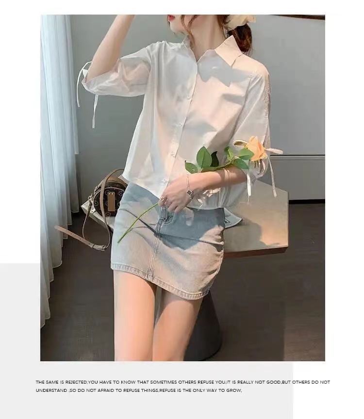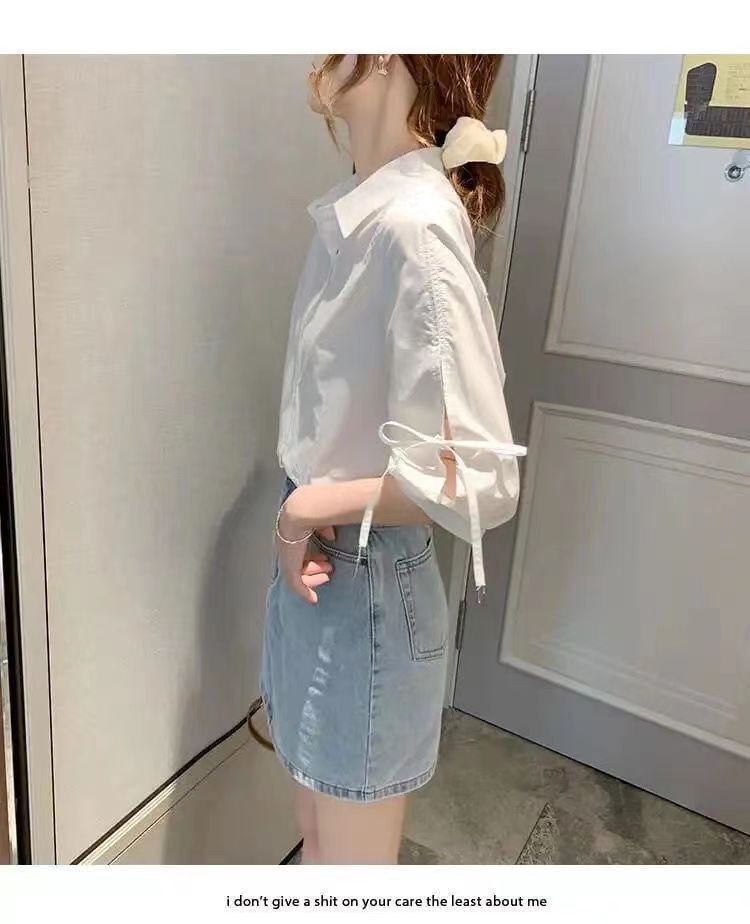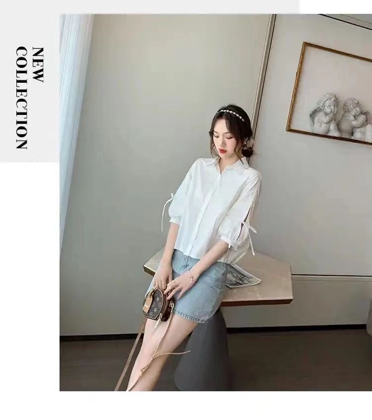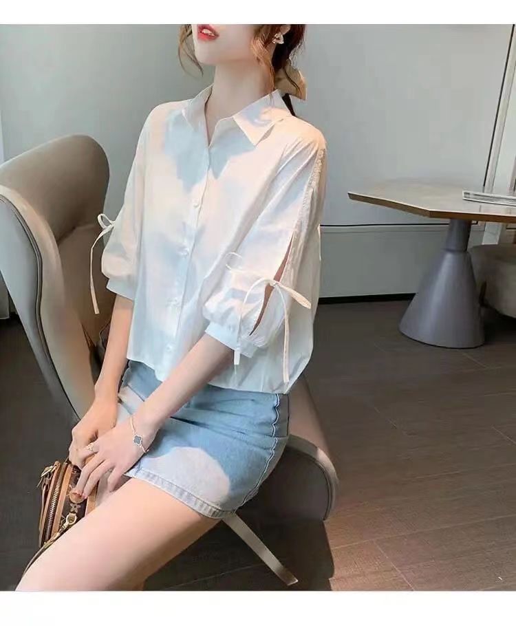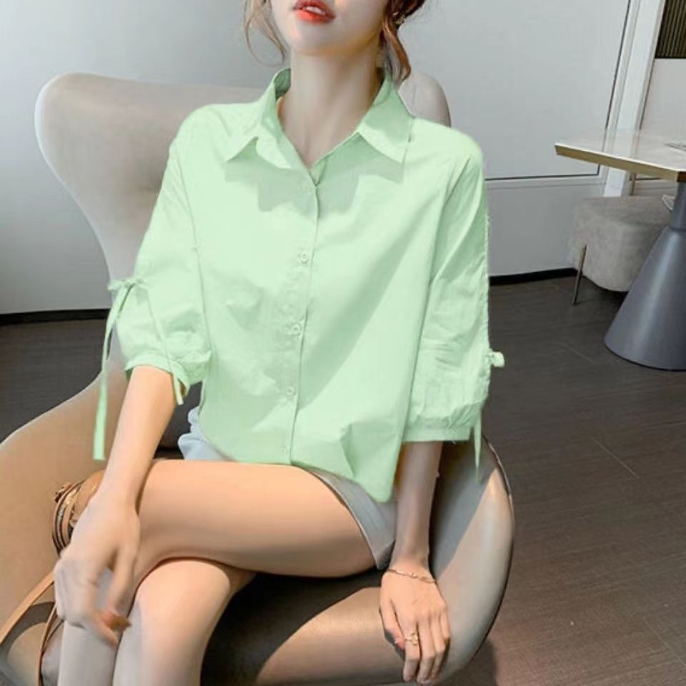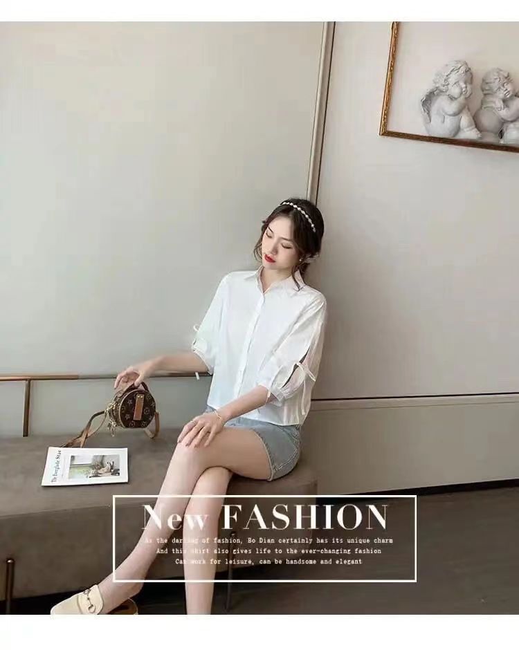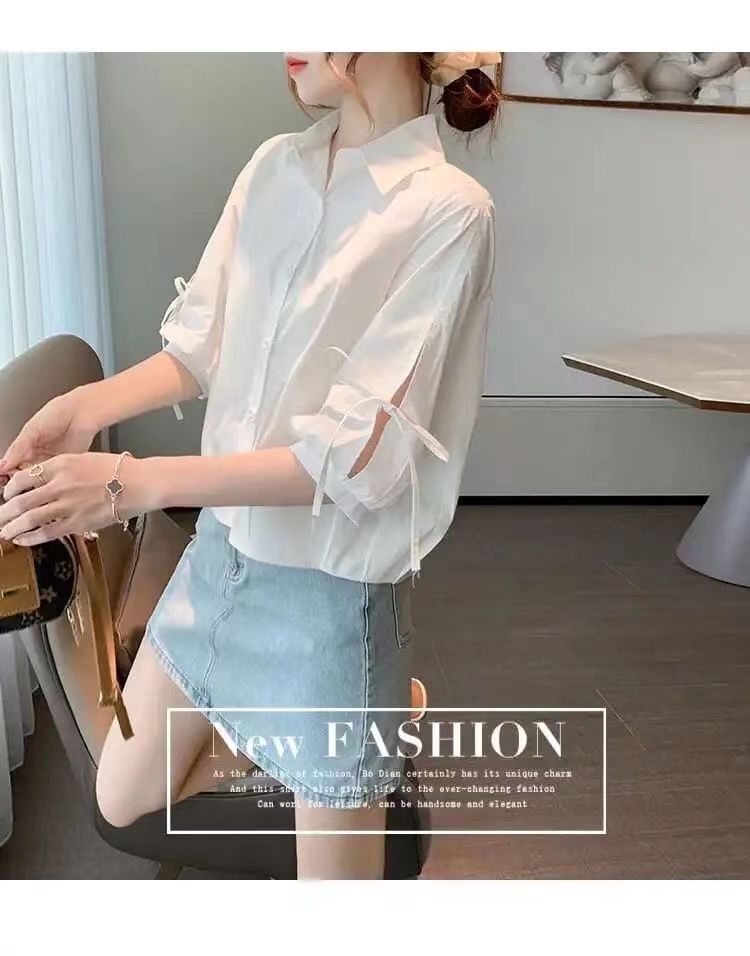 쉬폰 홍콩 스타일 7부 소매 셔츠 여성복 2025 신상 루즈핏 상의 신선하고 독특한 디자인 패션 상의스토어 가기