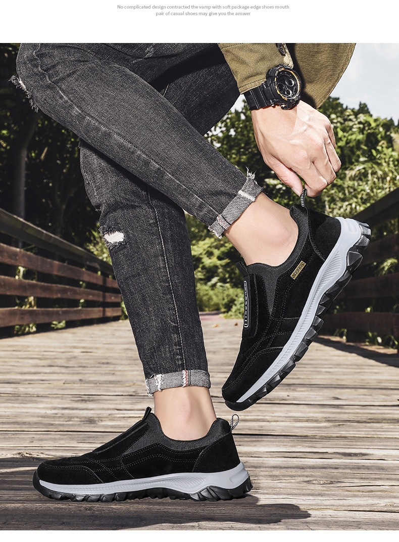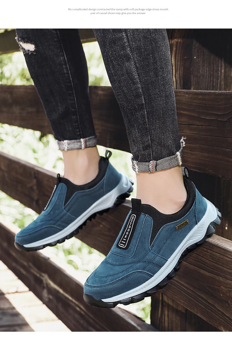 봄과 가을 새로운 남성 플러스 사이즈 캐주얼 싱글 레이어 신발 대외 무역 국경 슬립 온 커플의 남성과 여성을위한 야외 등산 운동화