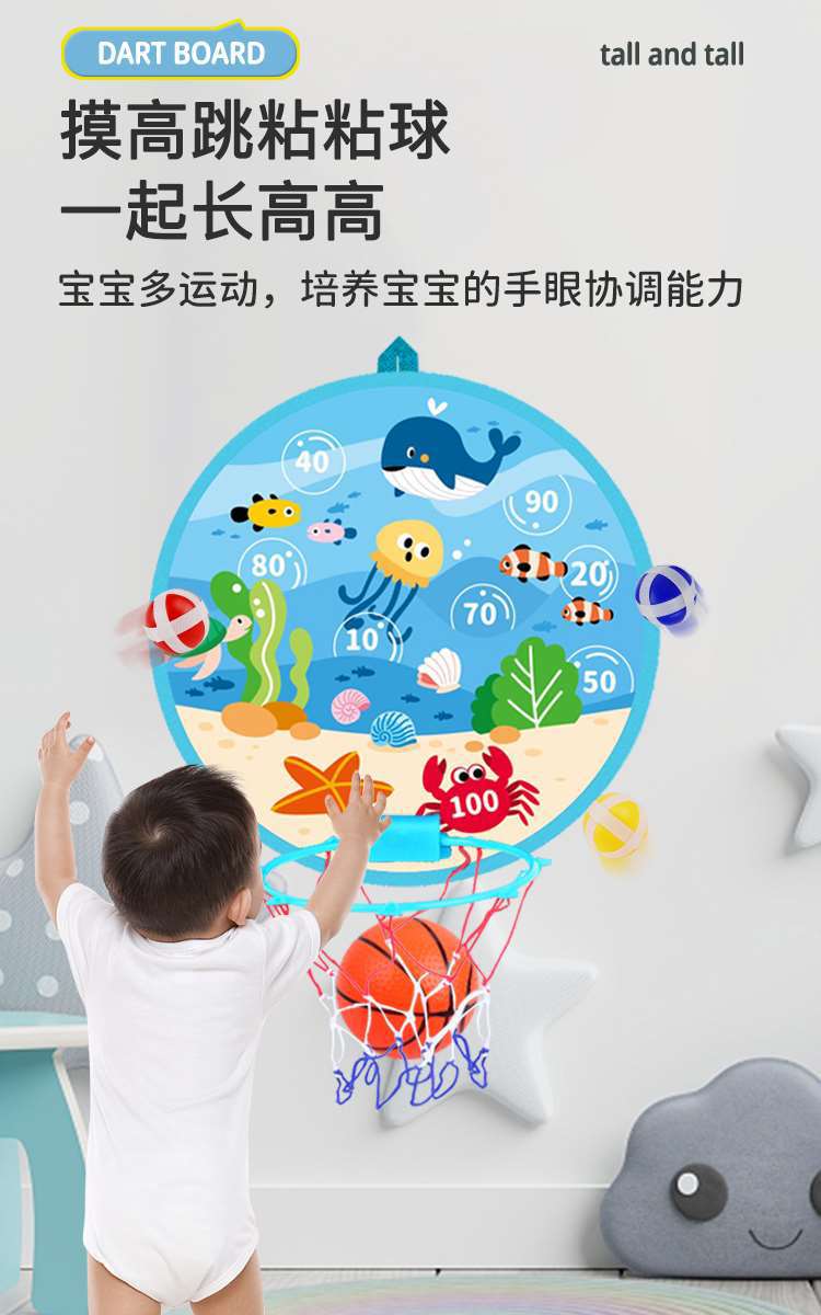 어린이 농구 상자 투인원 스티커 볼 다트 보드 슈팅 박스 실내 스포츠 완구 던지기 및 캐치 볼 조기 교육 완구스토어 가기