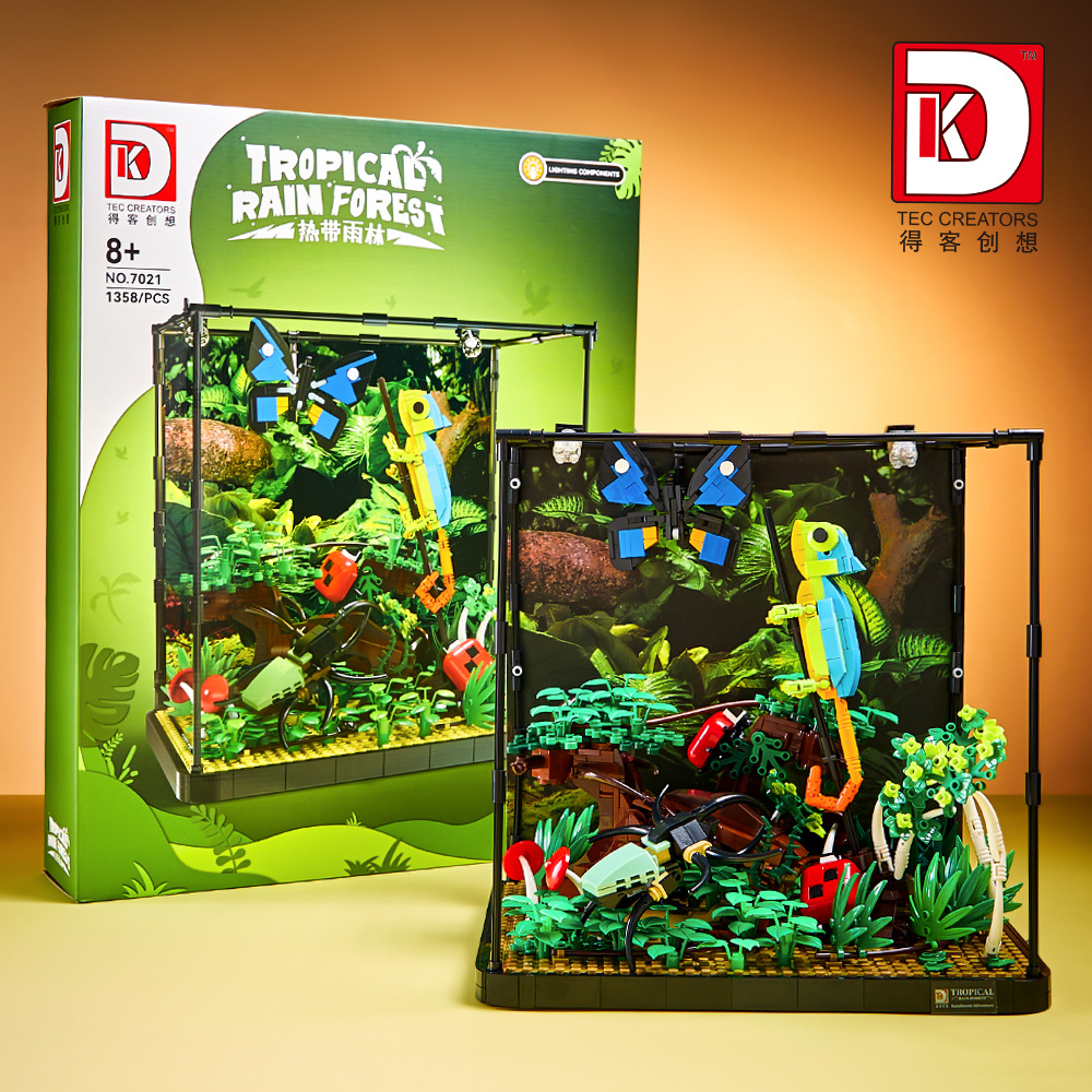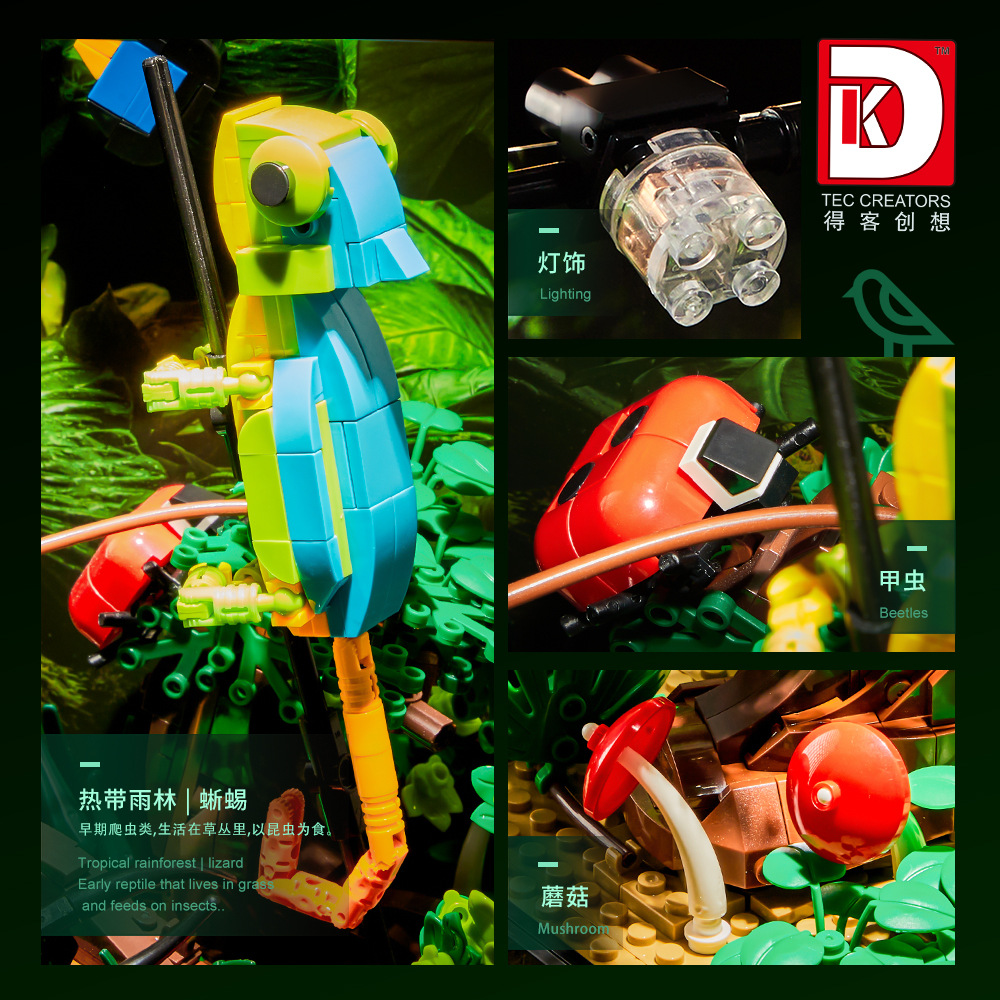 데커 창상 7021 열대우림 도마뱀과 곤충 장면 조명 교육용 빌딩블록 조립 장난감스토어 가기