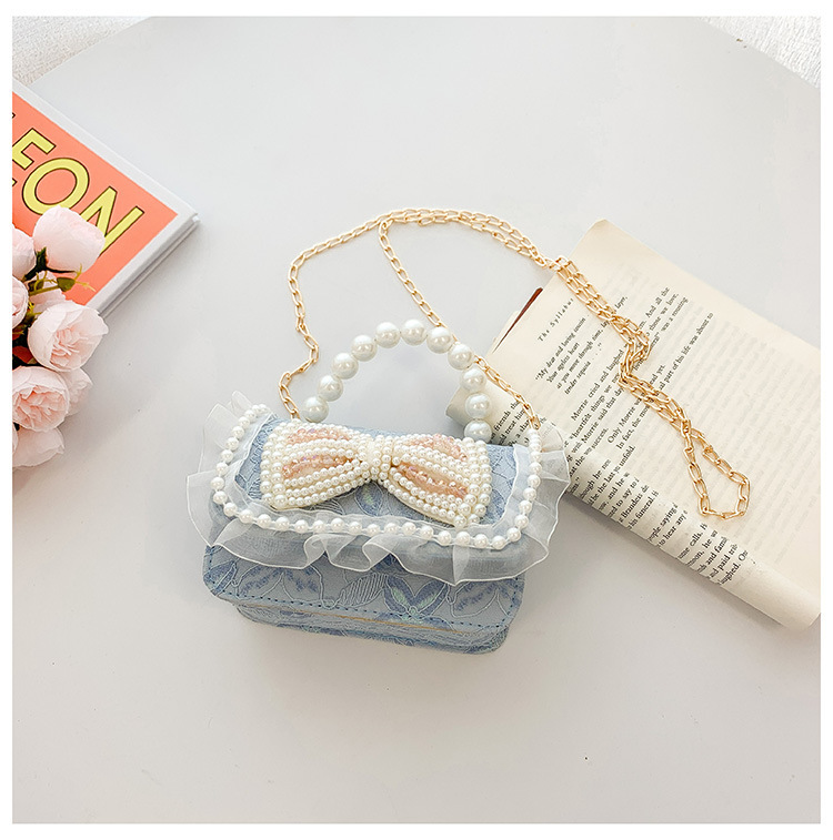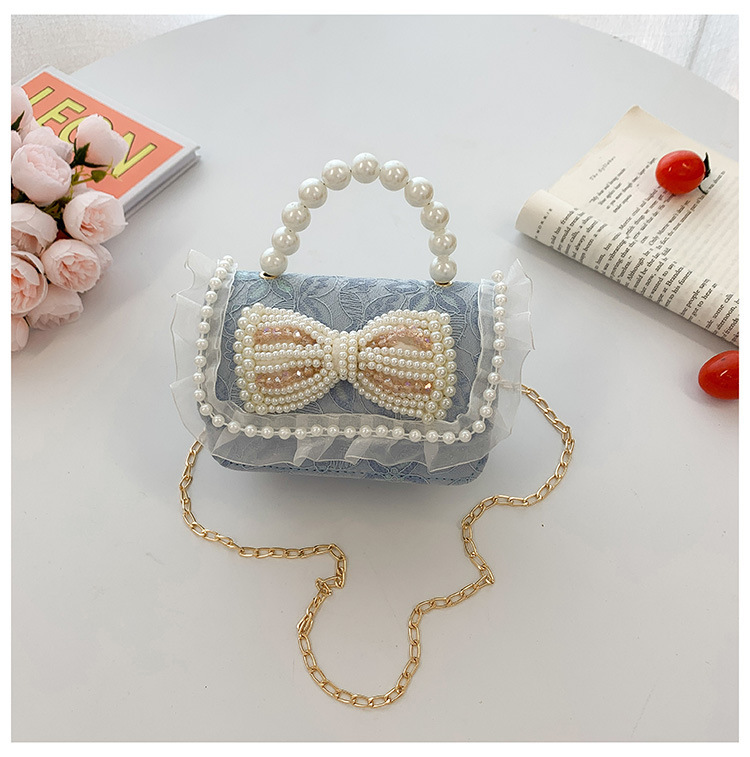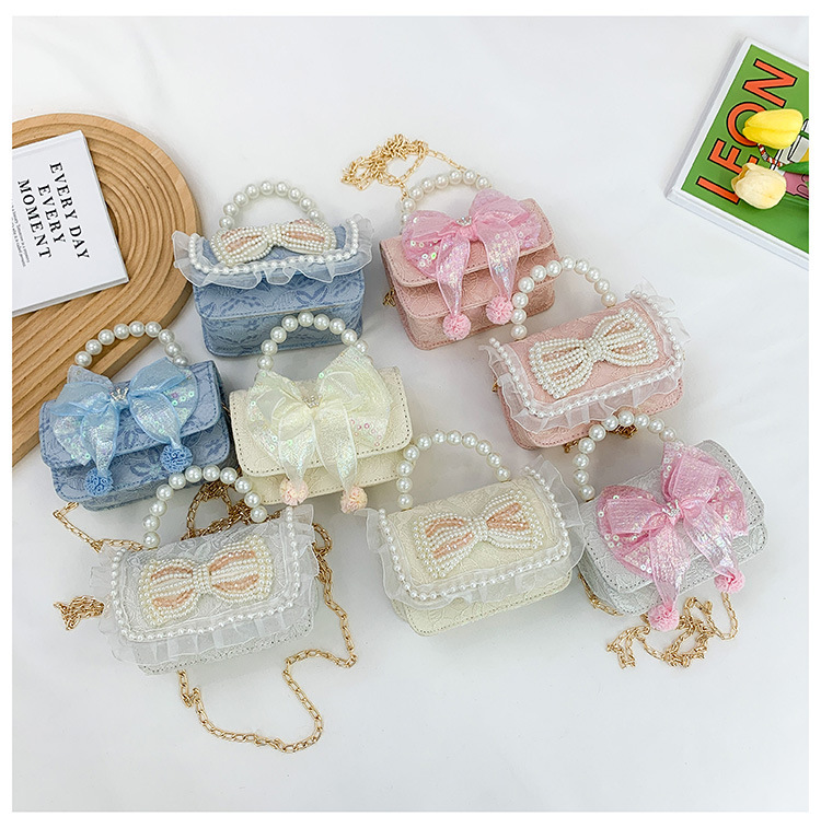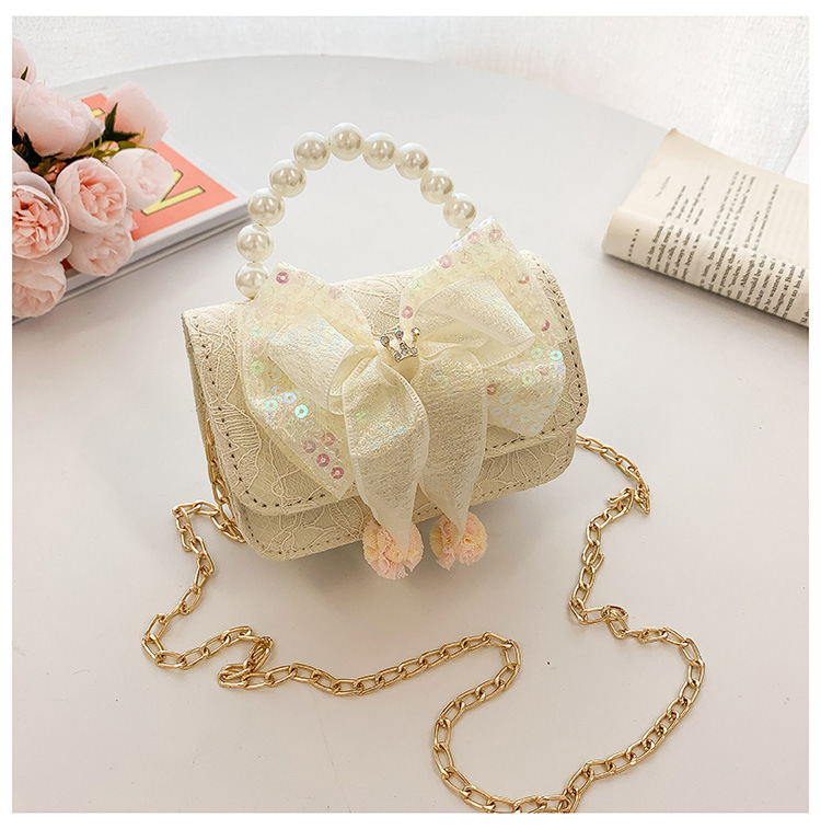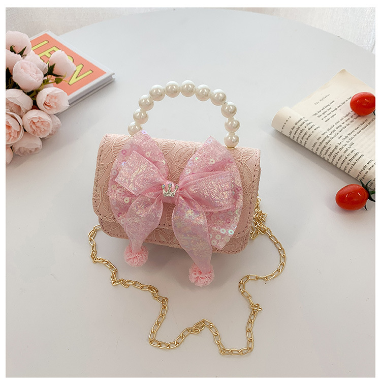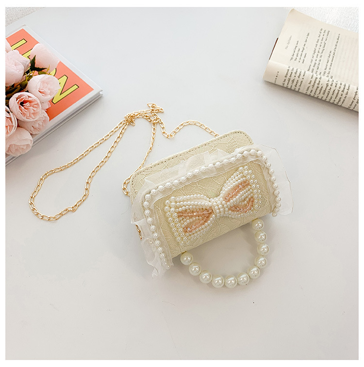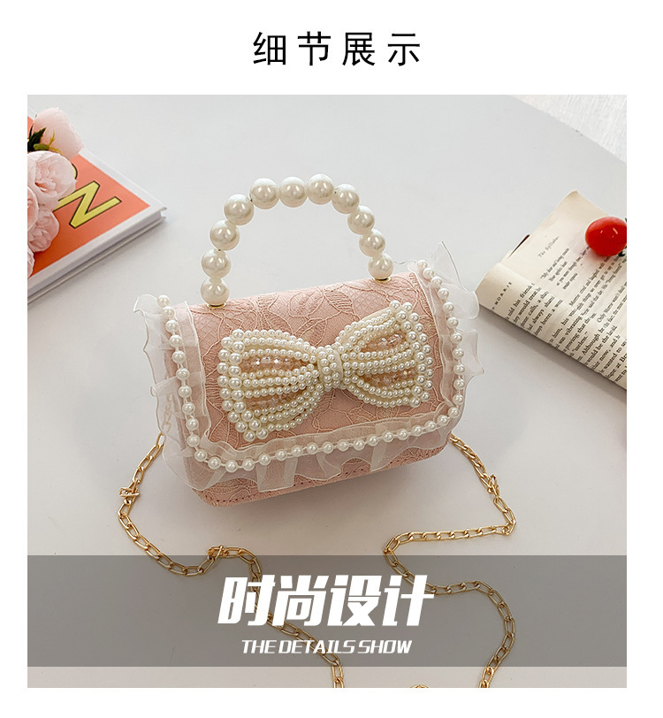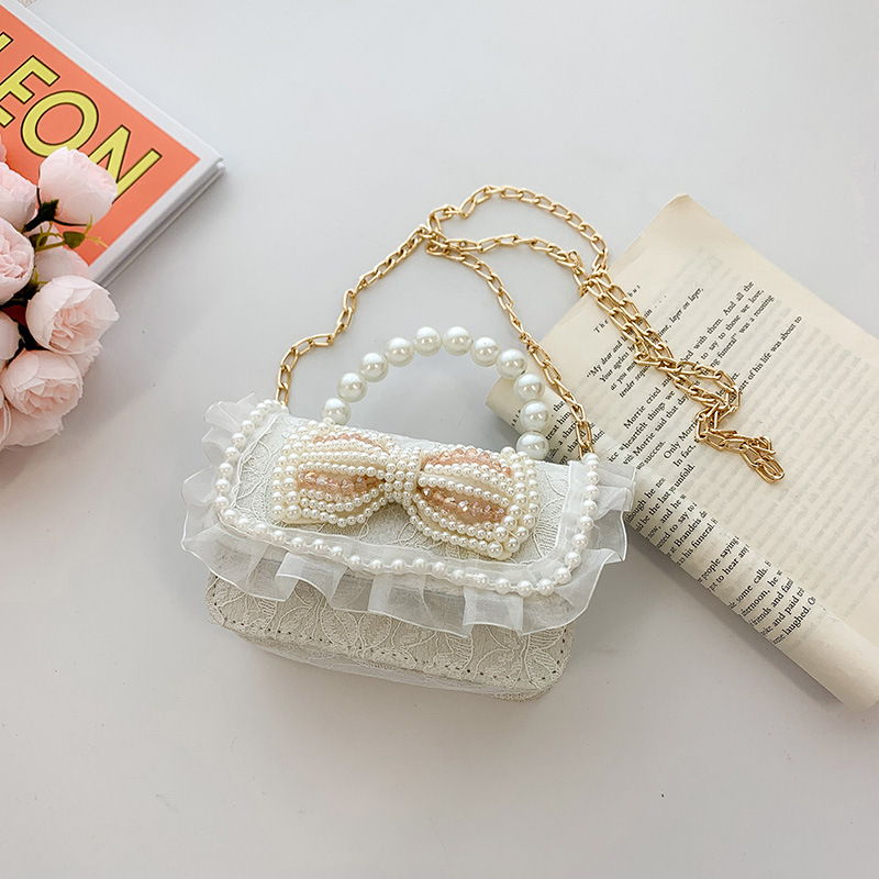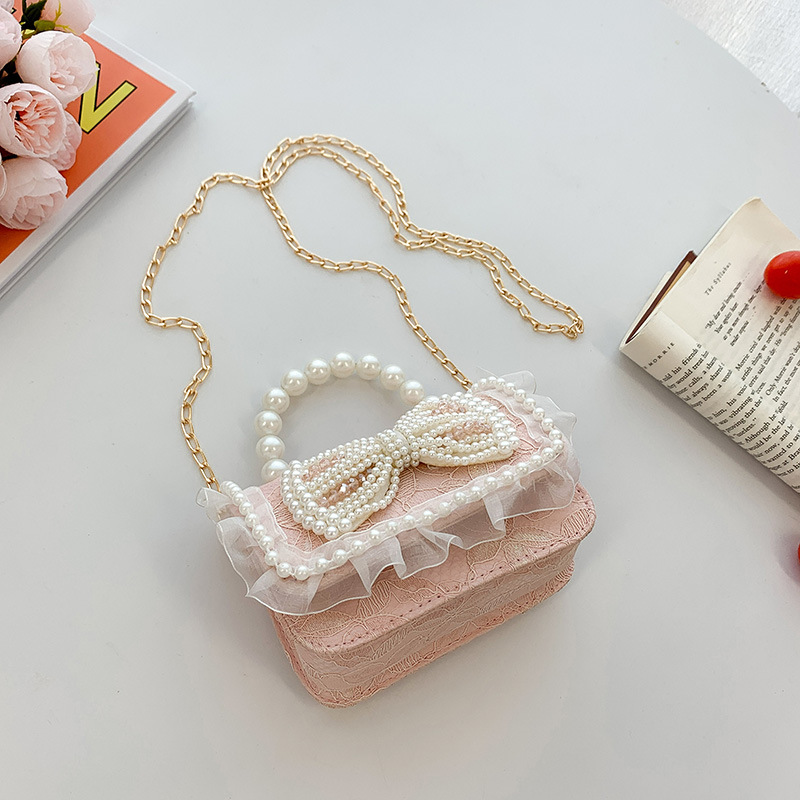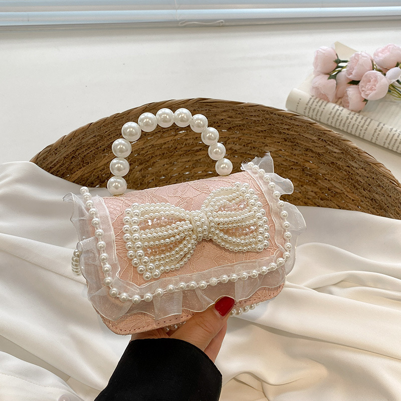 어린이 가방 패션 공주 진주 핸드백 귀여운 어린 소녀 동전 지갑 세련된 레이스 숄더 크로스 바디 백