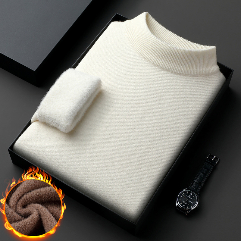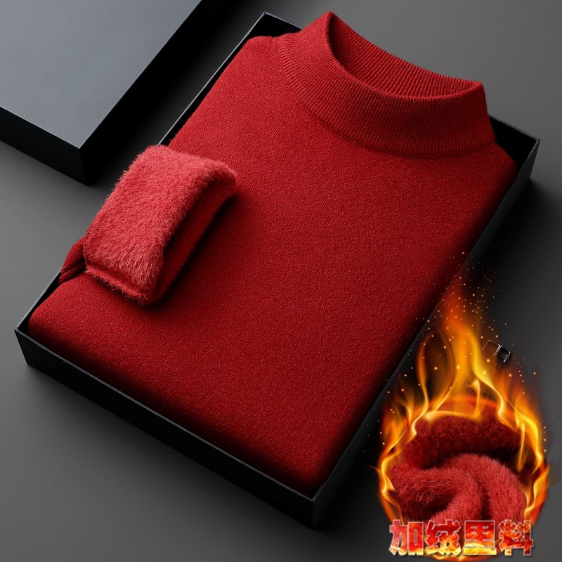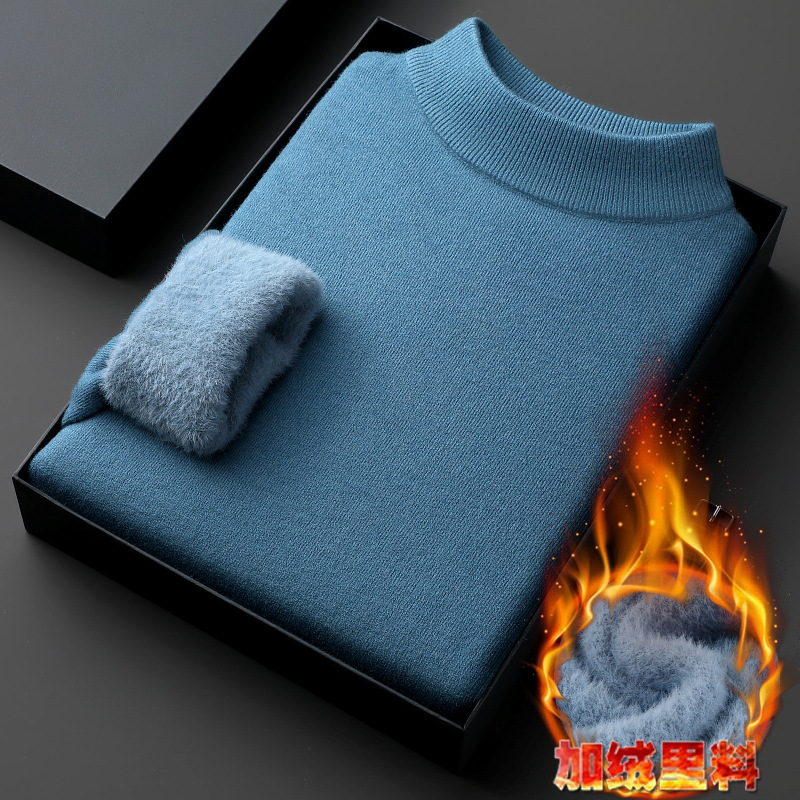하프 하이 칼라 솔리드 컬러 울 스웨터 남자의 가을과 겨울 패션 따뜻한 기모 두꺼운 기본 스웨터 원피스 울 스웨터스토어 가기
