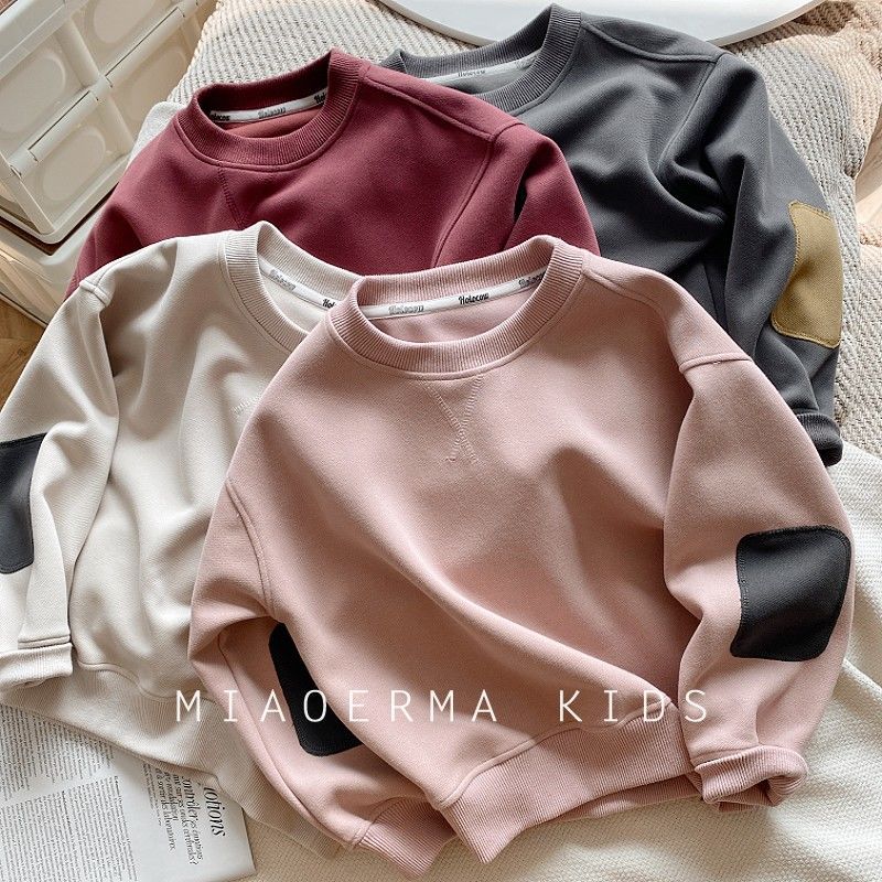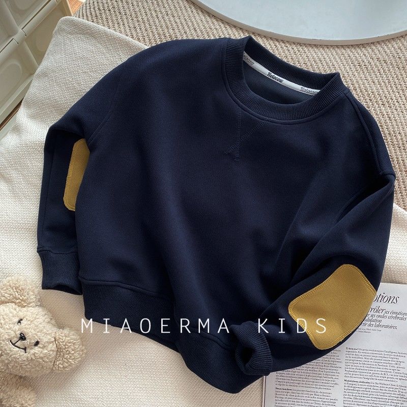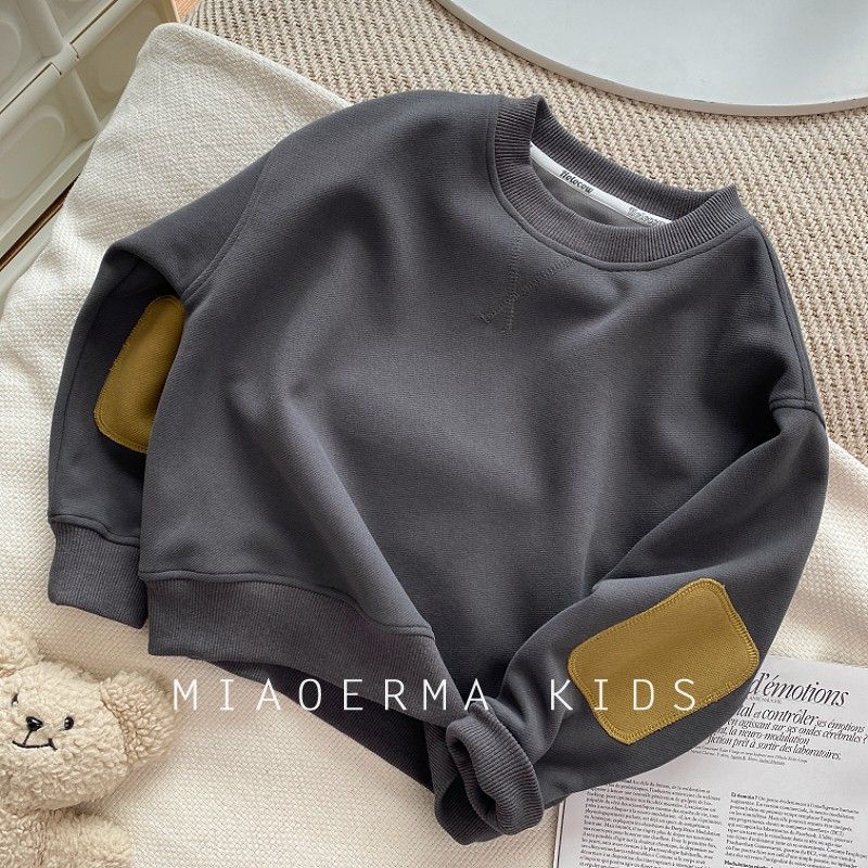 아동용 솔리드 컬러 스웨트 셔츠 2025 봄, 가을 새로운 스타일의 캐주얼 풀오버 스웨트 셔츠 소년 소녀용 다용도 탑스토어 가기