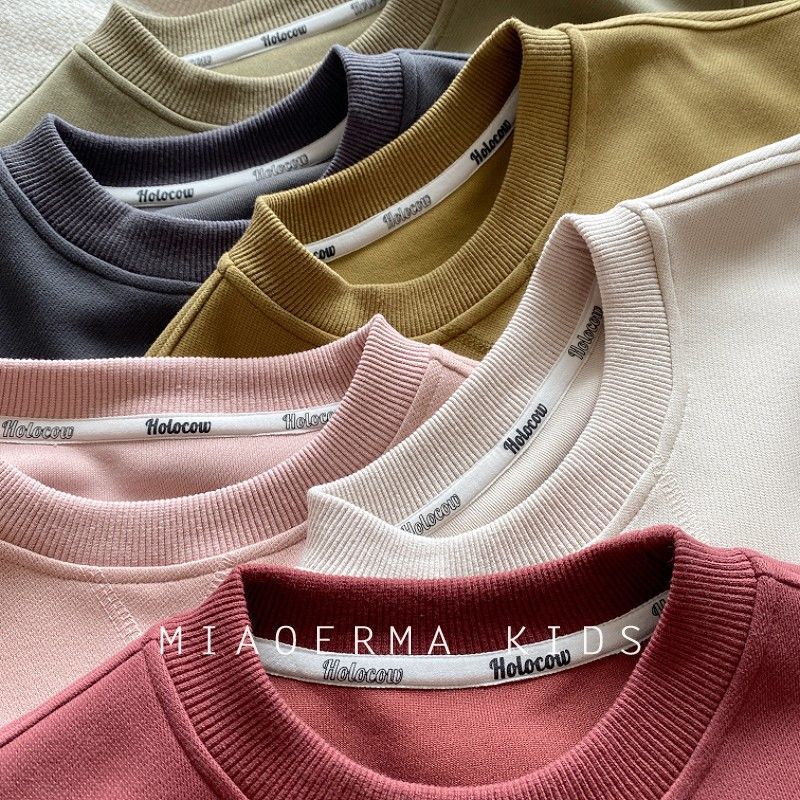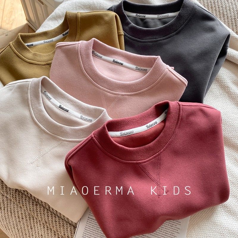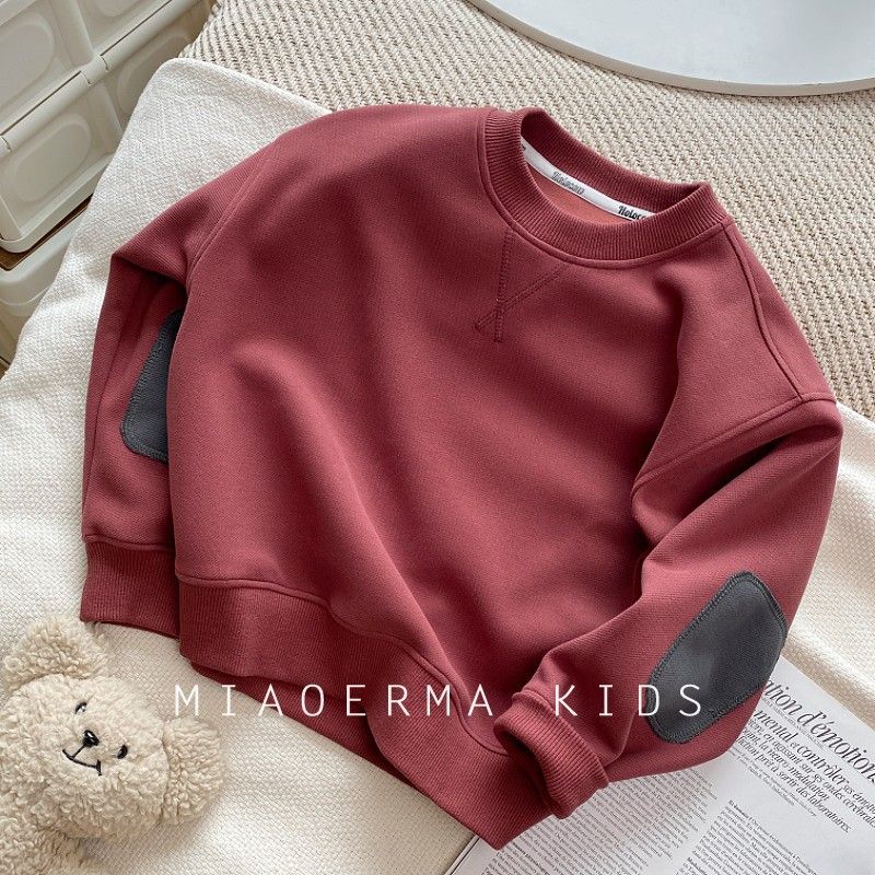 아동용 솔리드 컬러 스웨트 셔츠 2025 봄, 가을 새로운 스타일의 캐주얼 풀오버 스웨트 셔츠 소년 소녀용 다용도 탑