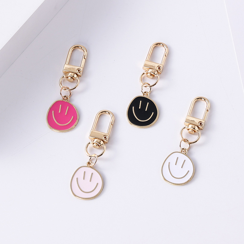 해외 무역 뜨거운 판매 기름 떨어지는 스마일 키체인 합금 도금 컬러 만화 성격 표현 펜던트 액세서리 도매