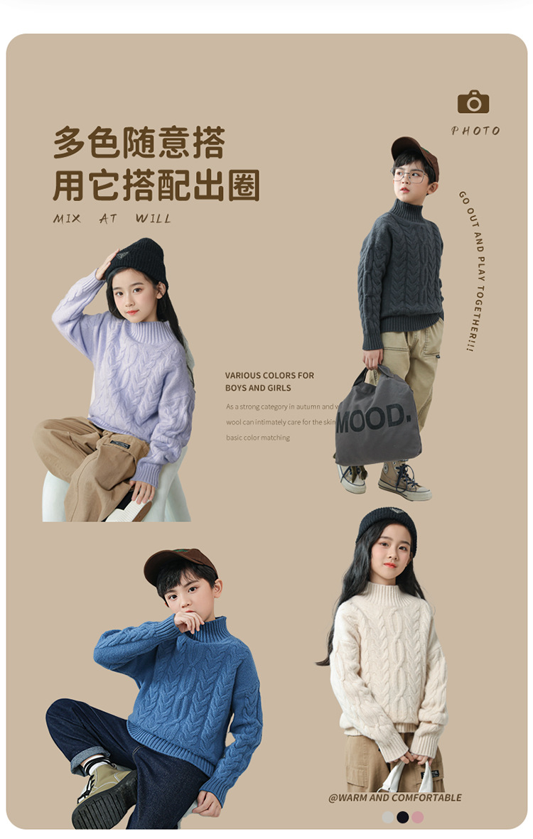 어린이 100 순수 울 니트웨어 중공업 두꺼운 소년 소녀 풀오버 하이 칼라 캐시미어 스웨터 베이비 베이스 셔츠스토어 가기