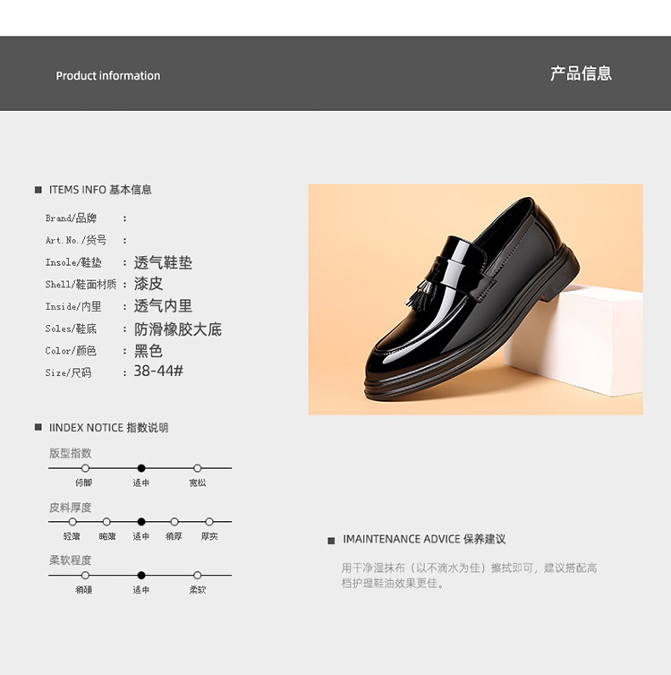 2023 새로운 가죽 신발 남자의 가을 비즈니스 원피스 플러스 사이즈 캐주얼 블랙 밝은 얼굴 웨딩 신발스토어 가기