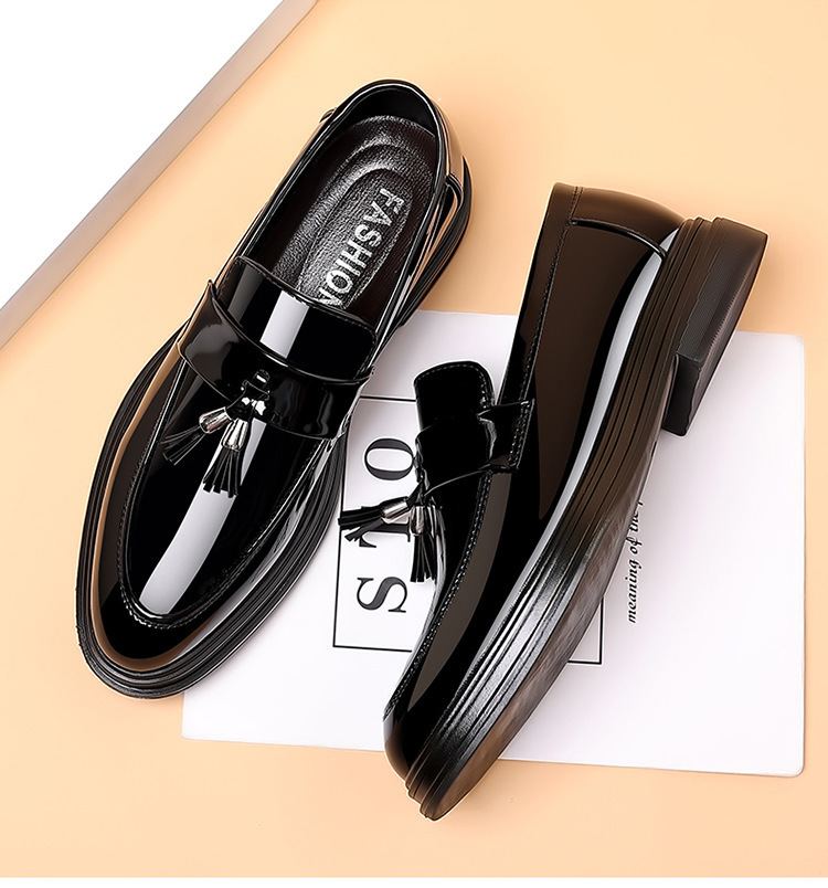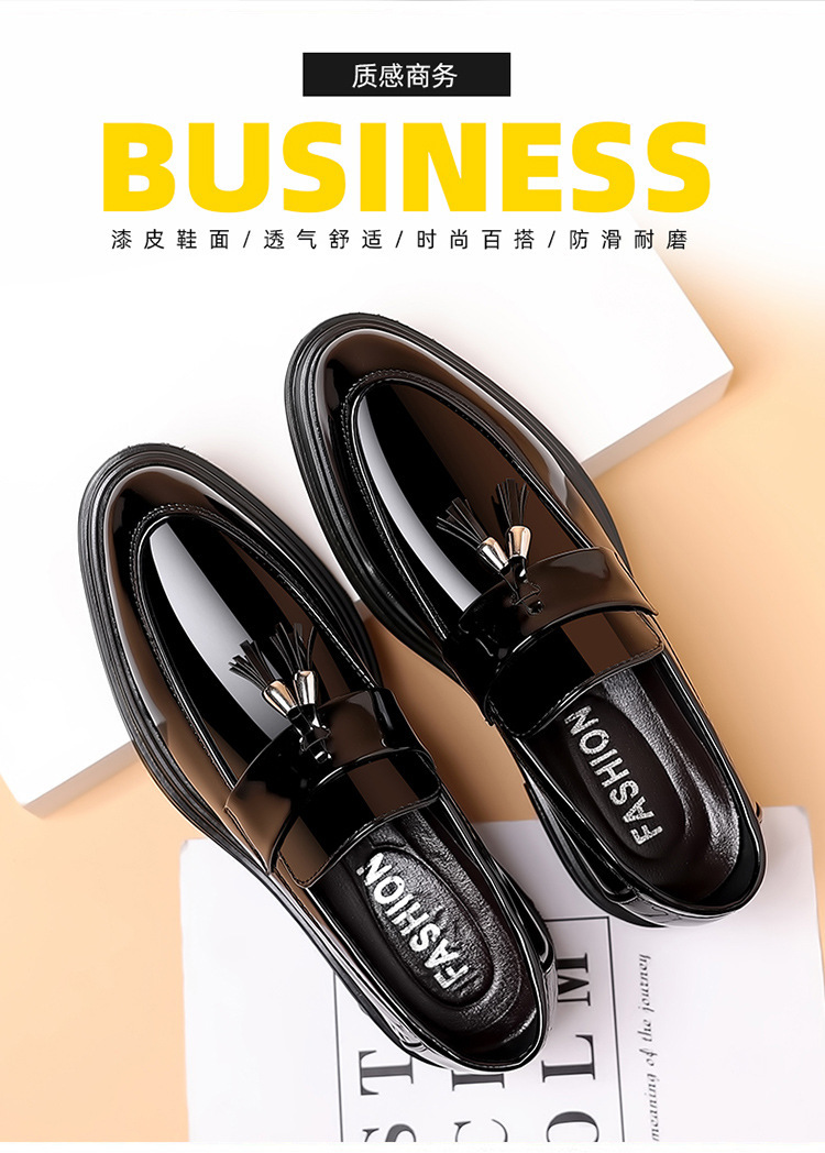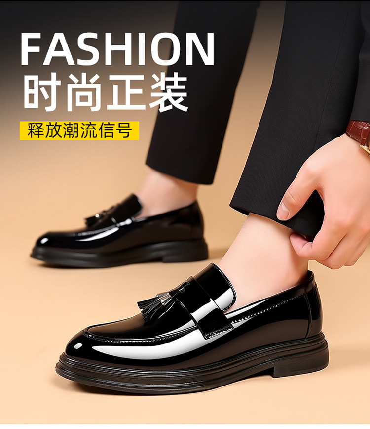 2023 새로운 가죽 신발 남자의 가을 비즈니스 원피스 플러스 사이즈 캐주얼 블랙 밝은 얼굴 웨딩 신발