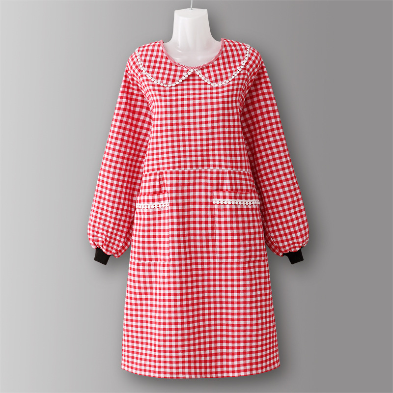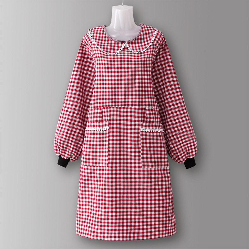• Red-SJ809 긴 소매 인형 칼라 면 격자 무늬