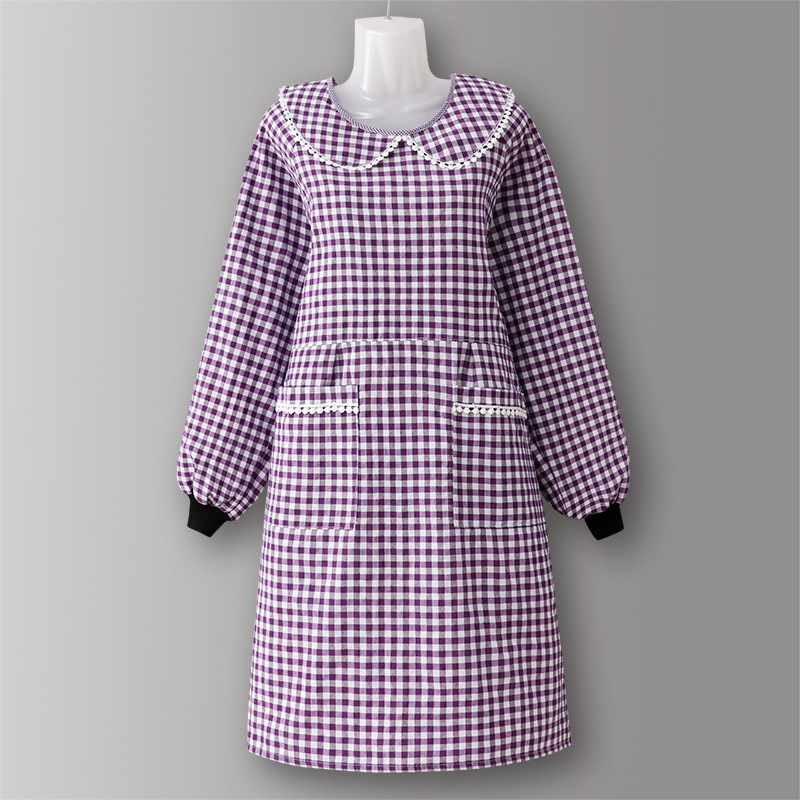 • Purple-SJ809 긴 소매 인형 칼라 면 격자 무늬