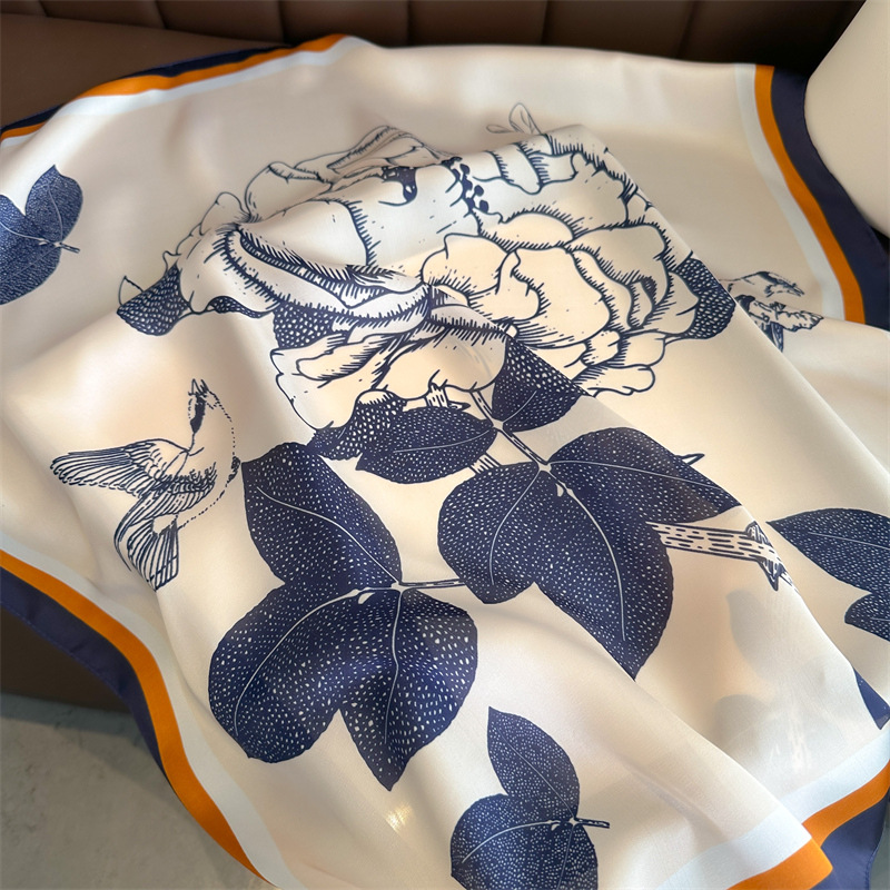 프렌치 프린트 실크 스카프 70 모조 실크 로즈 스몰 스퀘어 스카프 봄과 여름 얇은 스카프 여성용 모든 매치 스카프 넥타이 머리 스카프