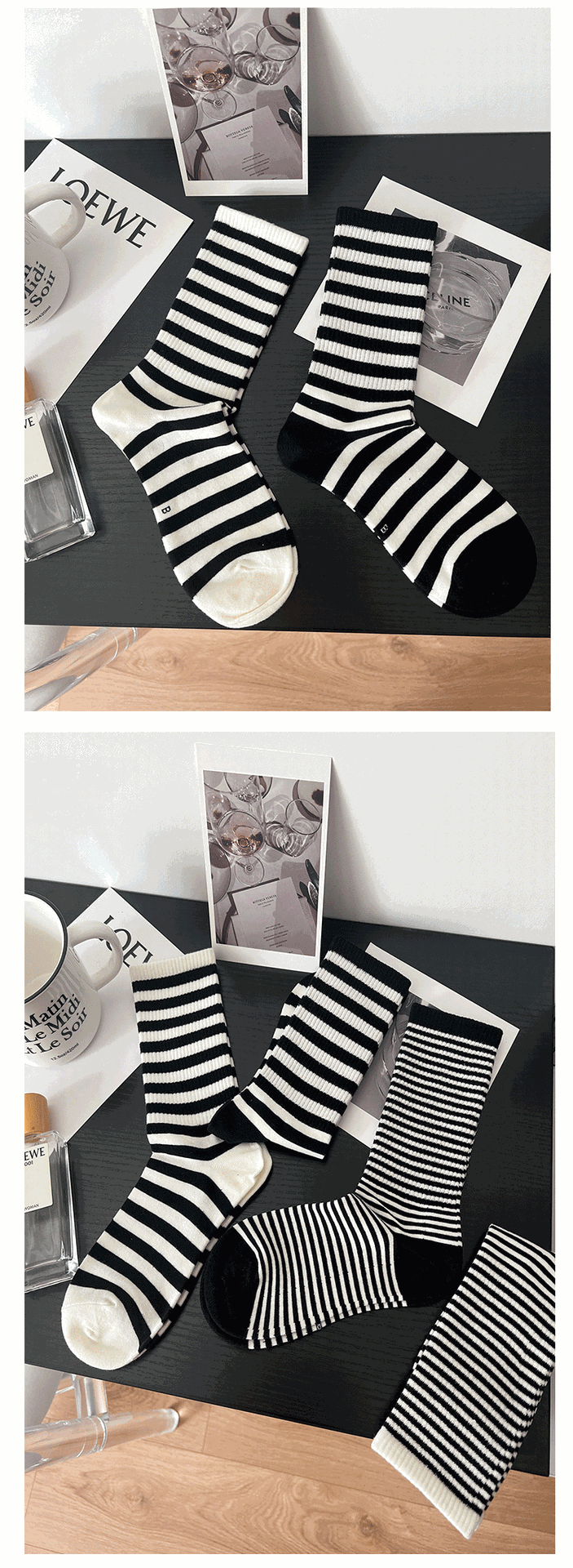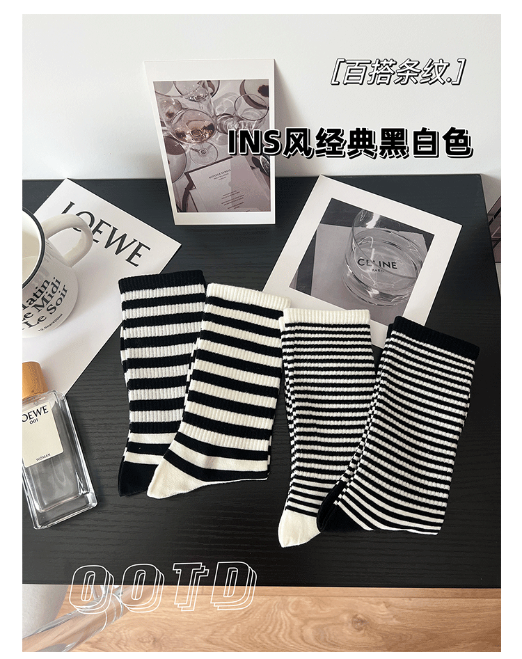 Ji Four 코끼리 양말 여성용 가을과 겨울 새로운 한국 스타일 스트라이프 하이 스타킹 빗질 코튼 아카데믹 스타일 모든 매치 학생 스택 양말스토어 가기