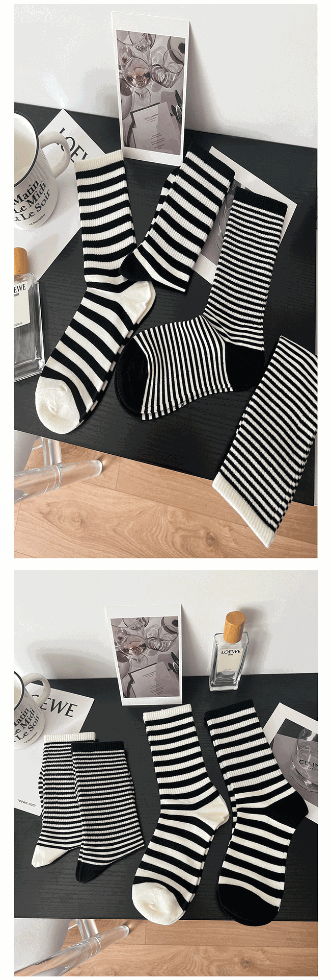 Ji Four 코끼리 양말 여성용 가을과 겨울 새로운 한국 스타일 스트라이프 하이 스타킹 빗질 코튼 아카데믹 스타일 모든 매치 학생 스택 양말