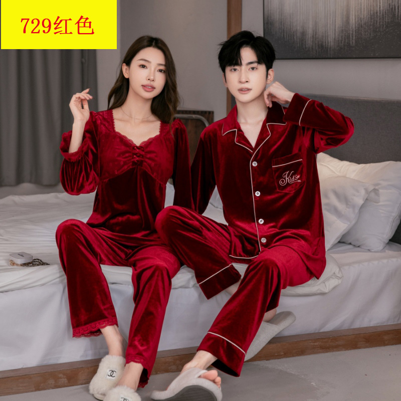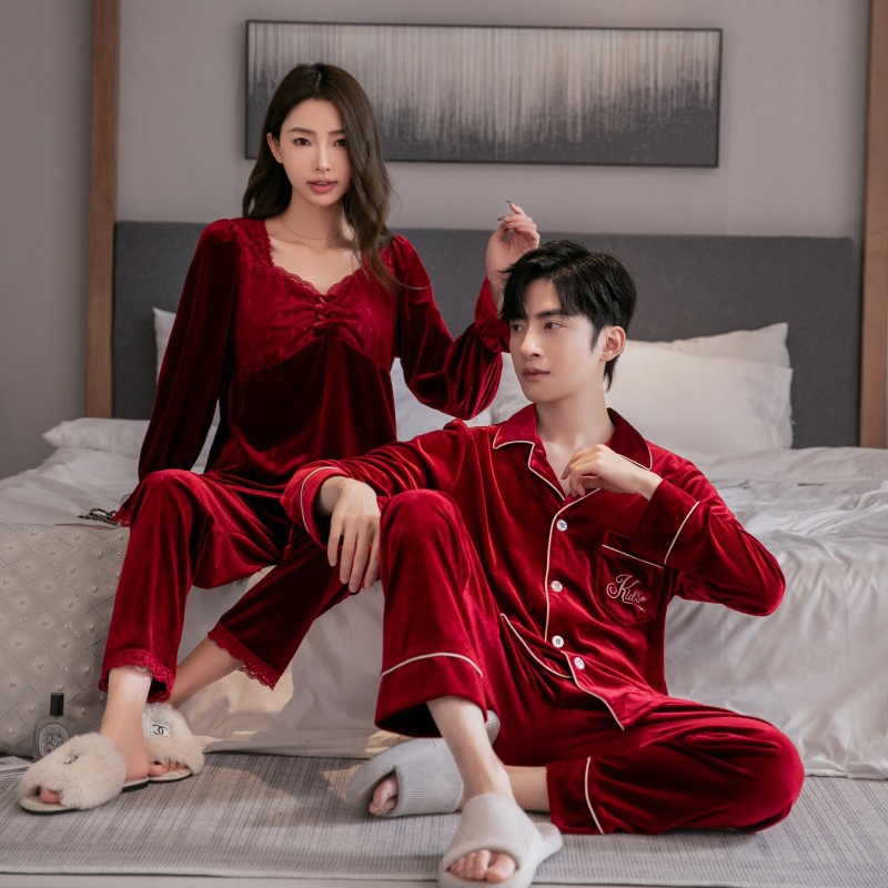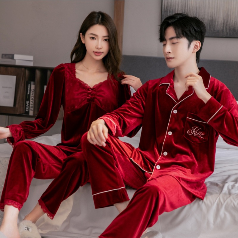 잠옷 결혼식 새로운 커플 고급 결혼식 봄과 가을 얼음 실크 레드 축제 결혼식 남성과 여성을위한 세트 동반스토어 가기